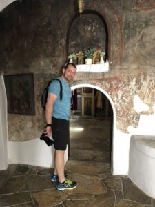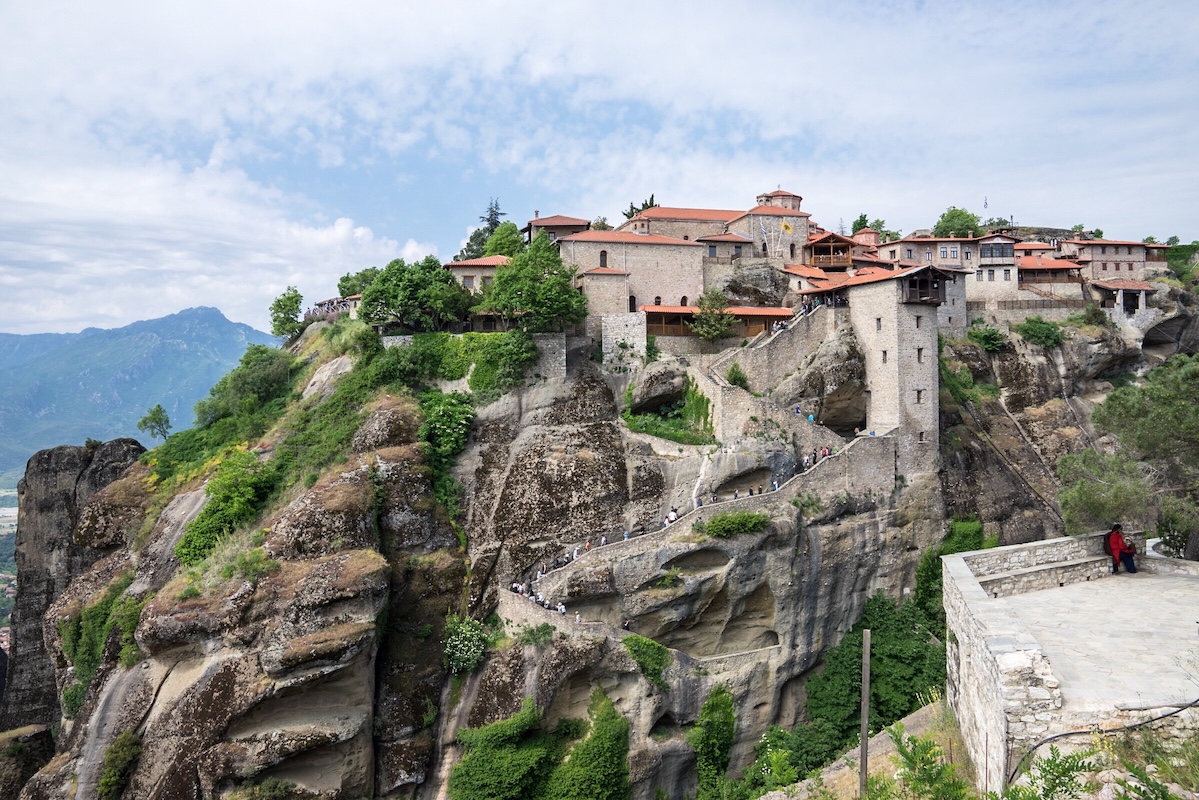 Als sich dann die Sandsteinfelsen von Meteora vor uns erheben, bin ich sehr beeindruckt. Dort haben Menschen Klöster gebaut? Nicht nur ein Kloster, nein, damals waren es 24 Klöster und Eremitagen. Jetzt sind noch 6 belebt und können besichtigt werden. Die restlichen 18 sind zu schwer zu erreichen oder wegen Einsturzgefahr verlassen. Metéora leitet sich von „meteorizo“ ab, was „in die Höhe heben bedeutet (Wikipedia).