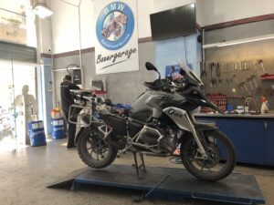 Jetzt sitzen wir in der Boxergarage in Athen und warten auf unsere treuen „Rösser“. Rosi und Bobber sind beim Service. Frisches Oel, Filter usw.. Das haben sie sich verdient.