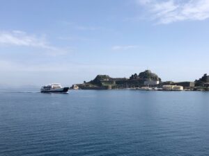 Dann fahren wir auf Korfu. Ehrlich gesagt: Enttäuschung bei uns Beiden. Wir hatten uns die Insel doch ein wenig schöner vorgestellt. Hier und da ist mal eine schöne Aussicht, die Straßen sind ganz nett. Zumindest auf der Nordseite. Die Berge reichen direkt an das Meer, so dass die Häuser an den Hängen gebaut sind. Man kann hier sicherlich schöne Wanderungen machen. Aber das kann man auch auf dem Festland. Die Orte, die direkt am Meer liegen, sind auf Touristen ausgelegt. Für uns ist es nichts.