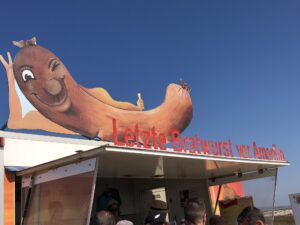 Als wir an dem Leuchtturm an der Spitze ankommen steht dort eine Bratwurstbude.