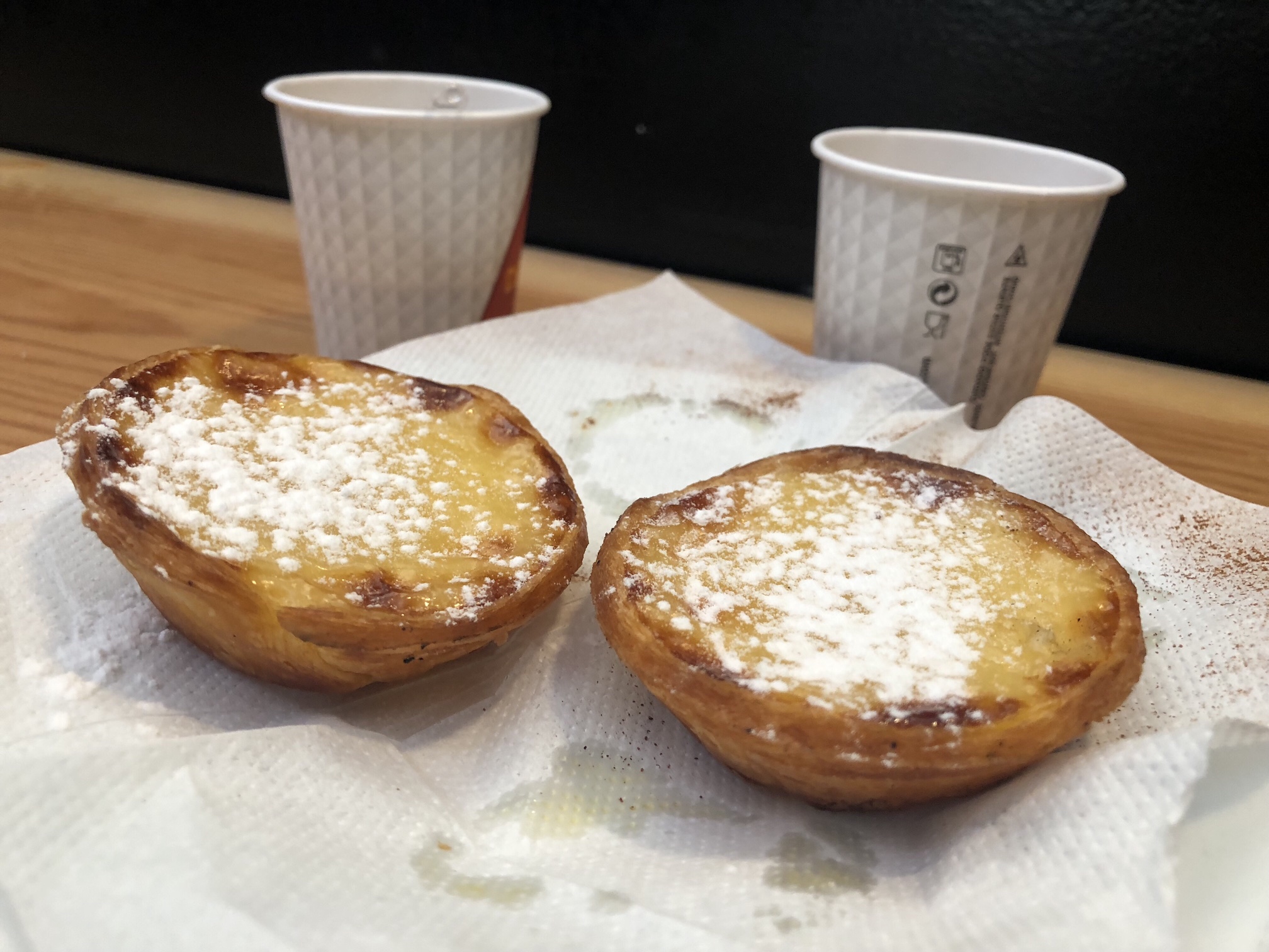 Also ersteinmal etwas essen. Es gibt eine Pizza. Nicht gerade günstig, aber sehr lecker. Zum Nachtisch gibt es die kleinen, mit Vanillepudding gefüllten Blätterteigtörtchen (eine Spezialität). Ich könnte mich da rein setzten, sowas von lecker!