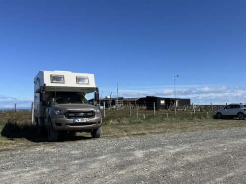 Wir fahren den ersten Übernachtungsplatz an um zu sehen, wie er ist. Ein kleiner Stellplatz an einem Gebäude. Weiter geht es zu dem Campingplatz. 18,00€ pro Person kostet der Platz, mit Dusche. Ah ja, das ist unverschämt teuer. Da fahren wir lieber die Wanderwege etwas länger an, als wenn wir hier stehen würden. So sehen wir noch mehr von dieser traumhaften Landschaft.