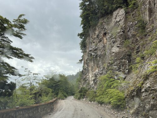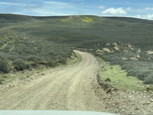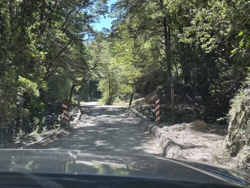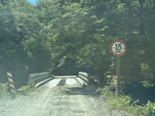 Raus aus dem Ort und einmal abbiegen zum Park und „Loch an Loch und hält doch“. Die Straßenverhältnisse verschlimmern sich Meter für Meter. Lochhopping ist an einigen Stellen angesagt. Dadurch sieht Micha die Landschaft nicht, da er voll konzentriert sein muss. Die Beifahrerin hält einiges auf Fotos fest, damit er im Nachgang sehen kann, was er gefahren ist.