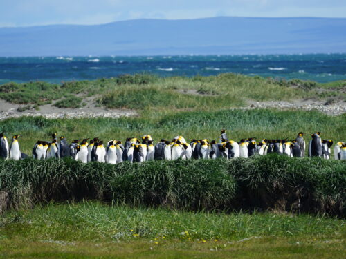 Um 11:00 Uhr haben im Reserva Natural Pingüino Rey einen Termin. Hier gibt es Kaiserpinguine und wie wir erfahren, eine privat betriebene Anlage. Vor betreten der Anlage müssen wir erstmal durch eine Desinfektionsmatte. Die Schuhe verschwinden fast in dieser Matte. Die sind jetzt definitiv desinfiziert.