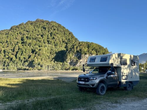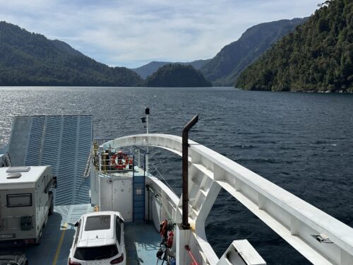 Die Fähre geht heute Abend. Um 18:30 Uhr kommt jemand zum vermessen von Bumba. Länge notiert und ab zum Häuschen und Bumbas Überfahrt bezahlen. Unser Fährkosten haben wir bereits beglichen. Morgen um 5:00 Uhr legt dann die Fähre ab. Es geht durch die chilenischen Fjorde. Geschlafen wird im eigenen Auto, was natürlich wunderbar ist.