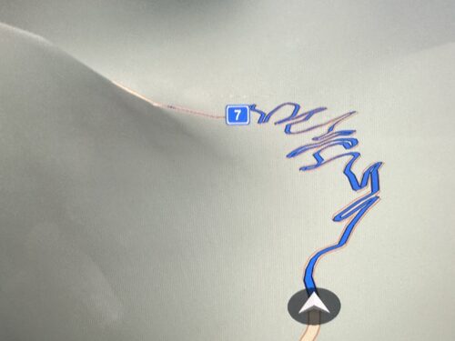 Micha möchte gerne den Pass fahren, eine kleine weiße Straße auf der Karte. Es ist die Y-635 und es ist eine schöne Straße. Eigentlich sind die weiß eingezeichneten Straßen relativ klein, schmal und nicht so gut befahrbar. Diese hier ist relativ gut zu fahren und die Aussicht schön. Wenn alle weißen Straßen so sind ist das super. Wenige fahren diese Straßen, da sie in der Regel den Ruf haben, nicht gut befahrbar zu sein.