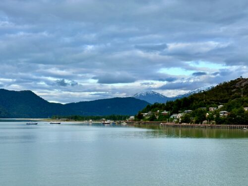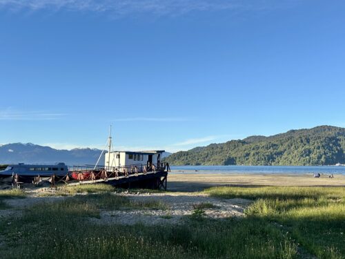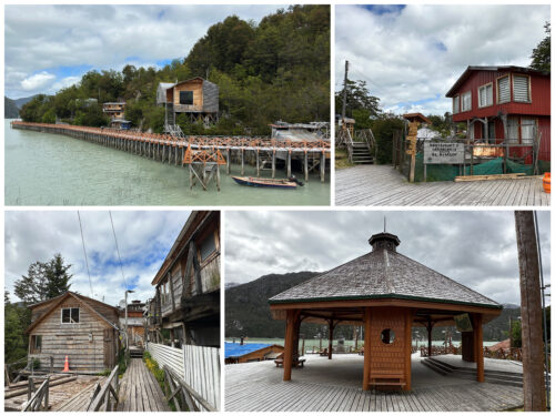 Ein kurzer Stopp am kleinen Hafen von Caleta Tortel. Ein Küstendorf, das hauptsächlich auf Stelzen steht. Es gibt keine konventionellen Straßen, stattdessen gibt es Holzstege.