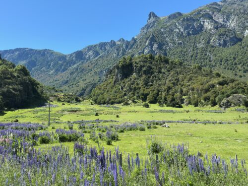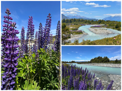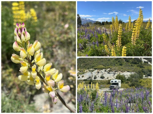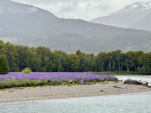An einer Stelle gibt es einen bunten Fleck inmitten des Flussbettes. Es sind Lupinen.