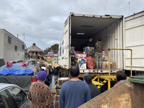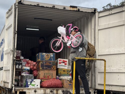 Einwohner kommen auf die Fähre und holen Pakete ab. Lebensmittel oder Baumaterial, aber auch Weihnachtsgeschenke werden abgeholt.
