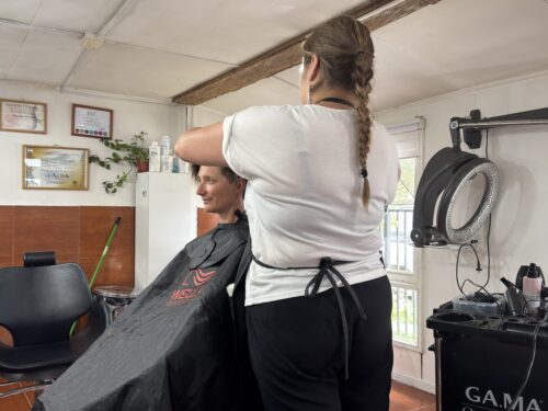 Die Wäsche möchte gemacht werden und die Haare müssen ab. Mittlerweile kann ich die Haare hinter das Ohr klemmen. In dem Ort Cochrane soll es alles geben. Micha hat bereits die Punkte markiert und navigiert uns als Erstes zu der Wäscherei. Eine freundliche älter Frau steht hinter dem Tresen. Es geht nach Kilogramm. Insgesamt haben wir knapp 7 kg Wäsche. Eigentlich wollten wir selber waschen, leider ergab sich keine Gelegenheit und somit wird dieser Teil der Hausarbeit abgegeben.