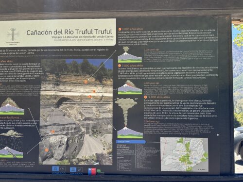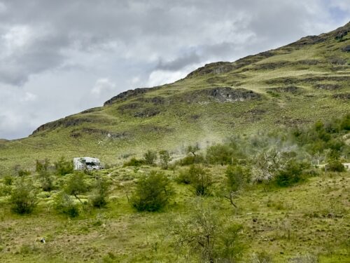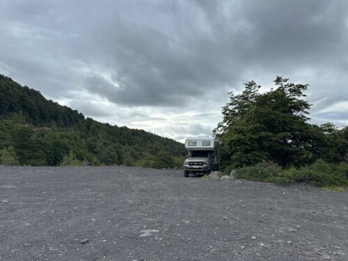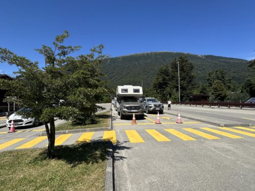 Wie gesagt, aus Chile sind wir fix ausgereist und in Argentinien eingereist. Die Straße ist eine normal Straße, führt allerdings durch einen Nationalpark, so dass hier quasi eine „Maut“ anfällt. Pro Person natürlich, für uns zum Glück mal wieder nur für eine Person. Auf der Straße liegt ein schöner Stellplatz, den wir dann nutzen. Für die bezahlte „Maut“ ist das ok.