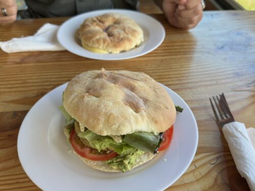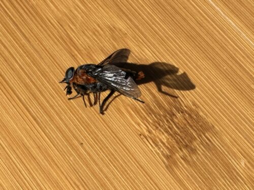 „Wollen wir draußen frühstücken?“ fragt Micha und geht vor die Tür um kurz danach wieder da zu sein. „Ich glaube, wir frühstücken drinnen“ sagt er. Anstelle der Bremsen sind jetzt kleine Fliegen da.