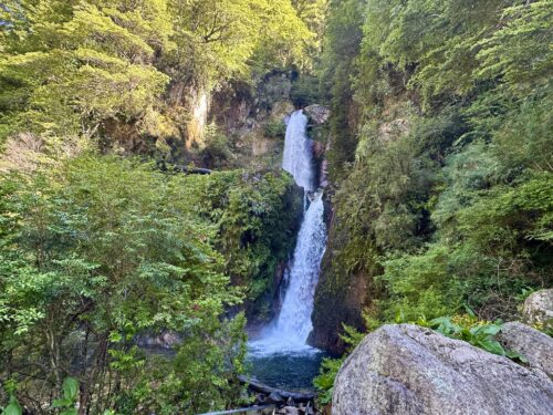 Zum Glück bekommen wir noch einen Parkplatz am Beginn des Wanderweges. Wanderstöcke raus und gemütlich geht es los. Bevor man den Wasserfall sieht, hört man ihn. Dann steht man vor ihm. Klares Wasser, das weiß / türkis schimmert, fließt mit einer enormen Kraft und Geschwindigkeit den Berg runter.