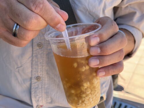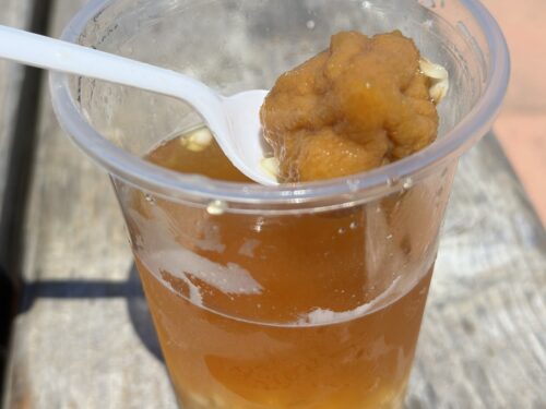 Erstmal Kekse und Kaffee und dann – ja, wir machen das wirklich – gehen ins Wasser. Der Atem stockt erstmal bis man dann doch komplett im Wasser ist. Die Einheimischen, die das Schauspiel beobachtet haben, hatte sicherlich ihren Spaß. Wir aber auch.