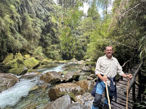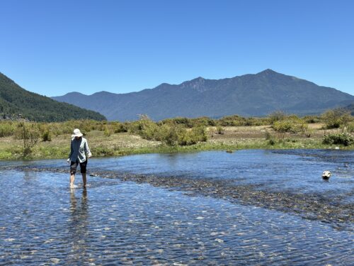 Am Ende des Wanderweges hat man eine grandiose Sicht auf die hohen Berge. Diese Stille ist umwerfend… und dann hört man Stimmen, die deutsch sprechen. Wir treffen ein Ehepaar aus Deutschland, die eine dreiwöchige Reise hier unternehmen. Dann kommt noch eine Bagpackerin – ebenfalls Deutsch. Zu guter Letzt gibt es noch ein Schweizer Ehepaar.…
