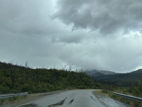 Unten angekommen reißt der Himmel dann auf. Blauer Himmel durchzogen mit Schleierwolken, sehr schön aber für uns zu spät. Es gibt schlimmeres. Eine Kleinigkeit gegessen und wir wir fahren die Ruta 7 weiter. Morgen geht es auf eine Wanderung mit Blick auf Seen, Berge und einem Gletscher. Den Zweiten, der im Park ist für den kein Eintritt bezahlt werden muss.