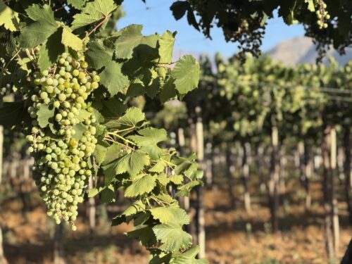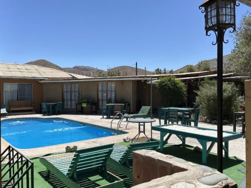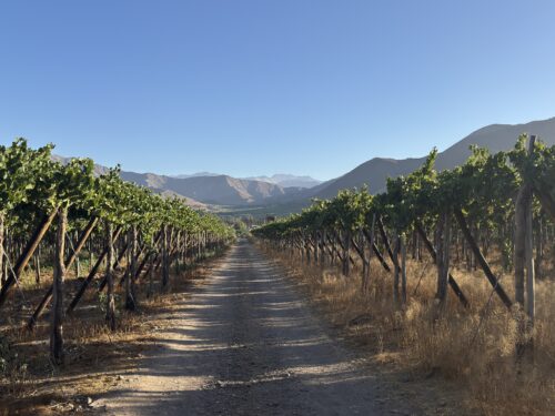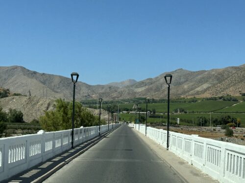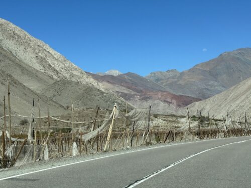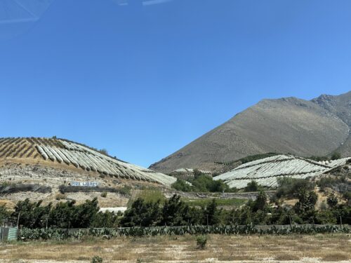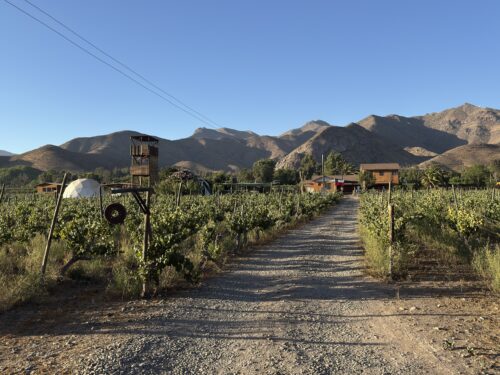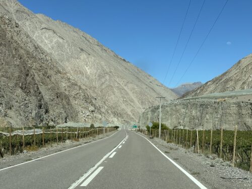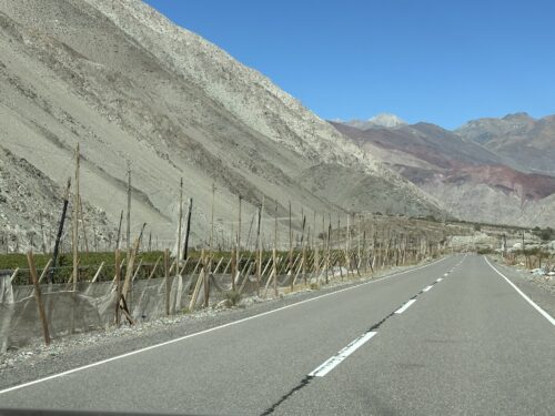 Wir fahren langsam das Tal hinab, Richtung Vicuña. Es wird langsam grün und grüner und „Guck mal, Weinreben“. Zu unserer Linken und Rechten verteilen sich Weinreben. Manchmal auch Obstplantagen. Wow. Damit haben wir nicht gerechnet. Würden wir Wein trinken, hätten wir gewusst, das Vicuña ein Weinanbaugebiet ist. Teilweise sehen wir auch Weinreben, die trocken sind, nicht gepflegt und die Netze zerrissen.
