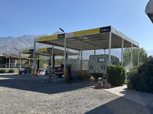Bevor wir das kleine Städtchen verlassen fahren wir noch zu einer Waschanlage für Bumba. Er brauch auch mal ein Bad.