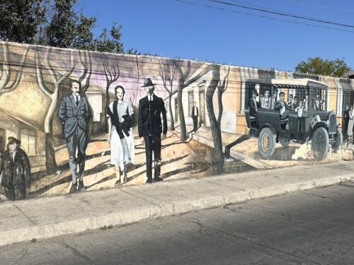 Jetzt noch schnell zur Tankstelle und dann geht es weiter. Auf der Hauptstraße gibt es noch viele Wandbilder, so dass Micha mich rauslässt und schon einmal zur Tankstelle fährt.
