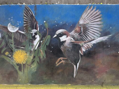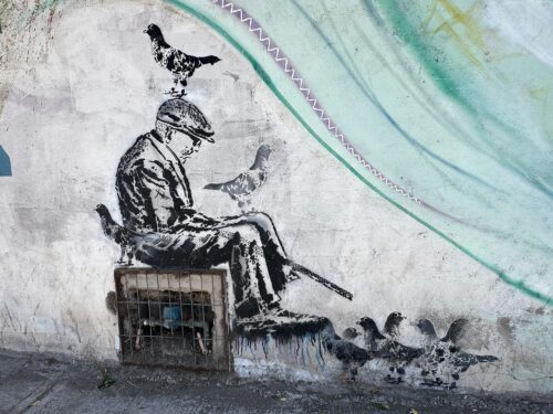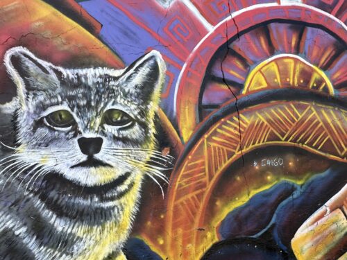 Wandmalereien sind nicht jedermanns Ding. Einige finde ich ansprechend und möchte sie dann auch „festhalten“. In diesem Fall hat ein Künstler eine Geschichte auf eine Mauer gemalt.