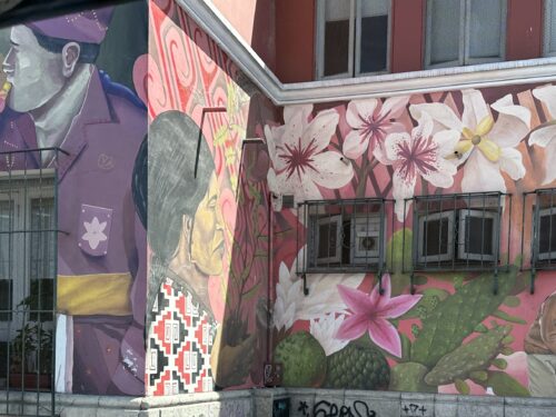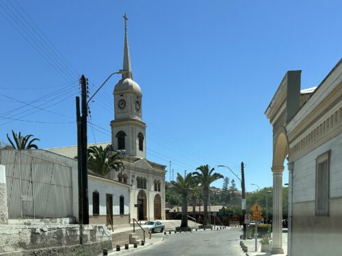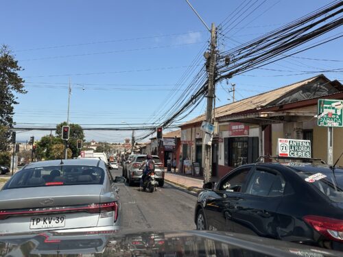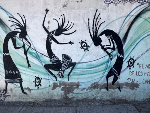 Wir müssen durch die Stadt „La Serena“. Der Stadtverkehr ist schlimm. Zu sehen gibt es für mich aber ein paar Dinge. Kunstvolle Kabelverlegung darf ich bestaunen, Wandschmiererein unterbrochen mit schönen Wandbildern.