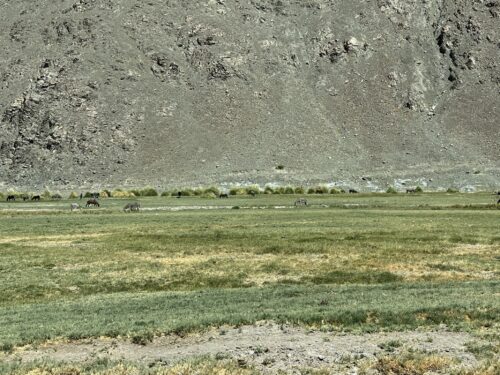 Langsam kommen die Berge und die Straßen werden an einigen Stellen interessant. Hin und wieder sehen wir in den Tälern Pferde oder Esel grasen. Die Täler sind eingebettet in diesen rauchen Bergen.