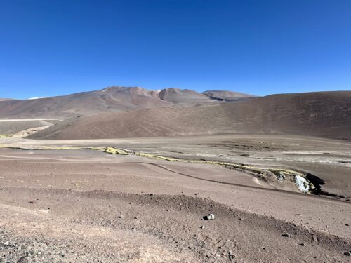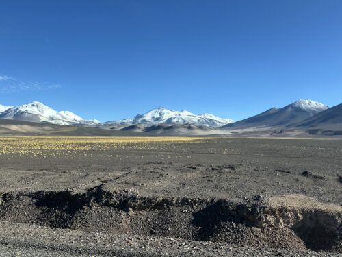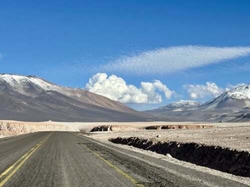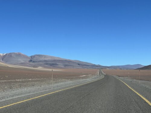 Lange gerade Straßen, gesäumt durch Vulkane, riesigen Bergen / Vulkanen am Horizont. So beeindruckend. Durch den strahlend blauen Himmel wirkt alles nochmal farbenprächtiger.