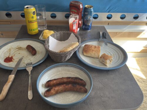 Aber es schmeckt. Micha ist nicht gerade für Linsen und selbst er sagt, das der Eintopf gut war. Die Suppe ebenfalls. So kann es weiter gehen.