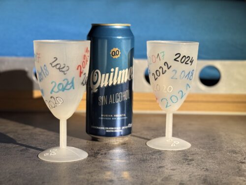 „Frohes neues Jahr“. Keine Böller oder Raketen. Nur die Stimmen von den anderen Menschen die hier sind. Wir stoßen mit unseren „Gläsern“ an, die uns seit 2017 begleiten. Anstelle von Sekt gibt es Bier.