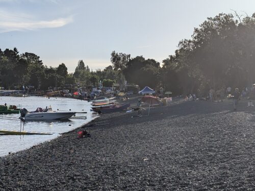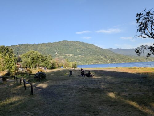 Die Straße ist ziemlich schmal und hier ist auf einmal sehr viel Verkehr. Wir sehen dann auch warum. Es gibt einen Strand und Picknickplatz. Es ist Freitag, es sind Ferien und die Sonne strahlt vom Himmel. Da zieht es viele raus.