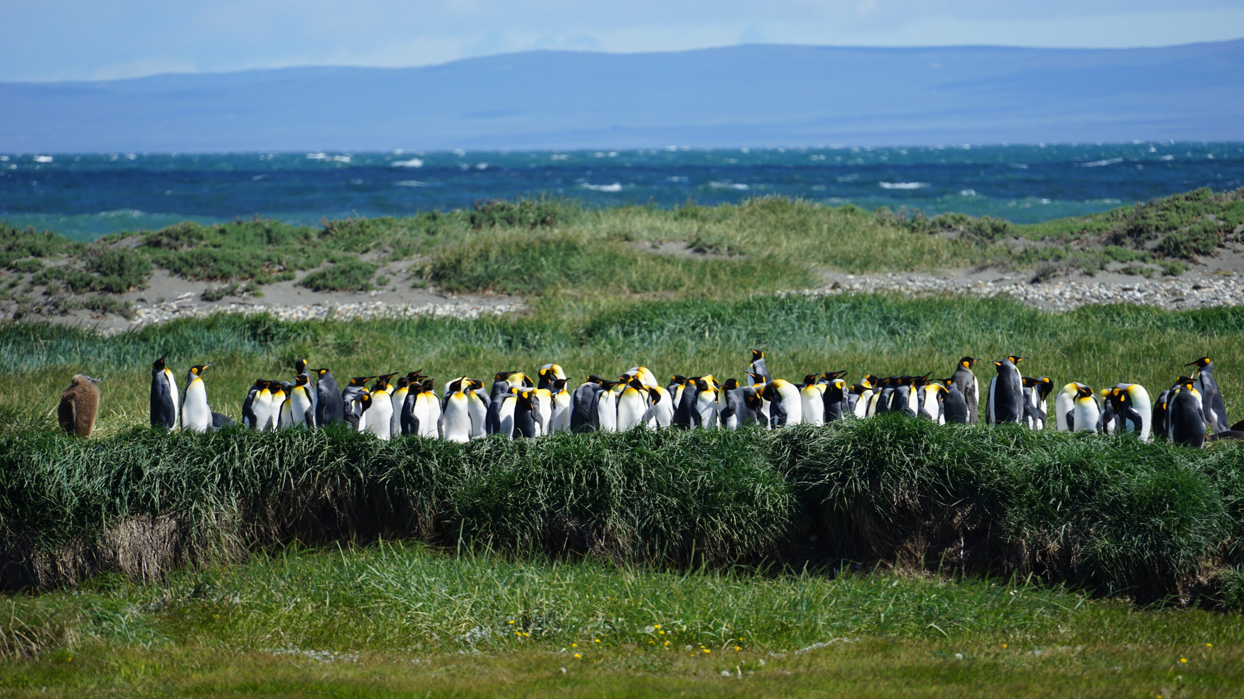 Um 11:00 Uhr haben im Reserva Natural Pingüino Rey einen Termin. Hier gibt es Kaiserpinguine und wie wir erfahren, eine privat betriebene Anlage. Vor betreten der Anlage müssen wir erstmal durch eine Desinfektionsmatte. Die Schuhe verschwinden fast in dieser Matte. Die sind jetzt definitiv desinfiziert.