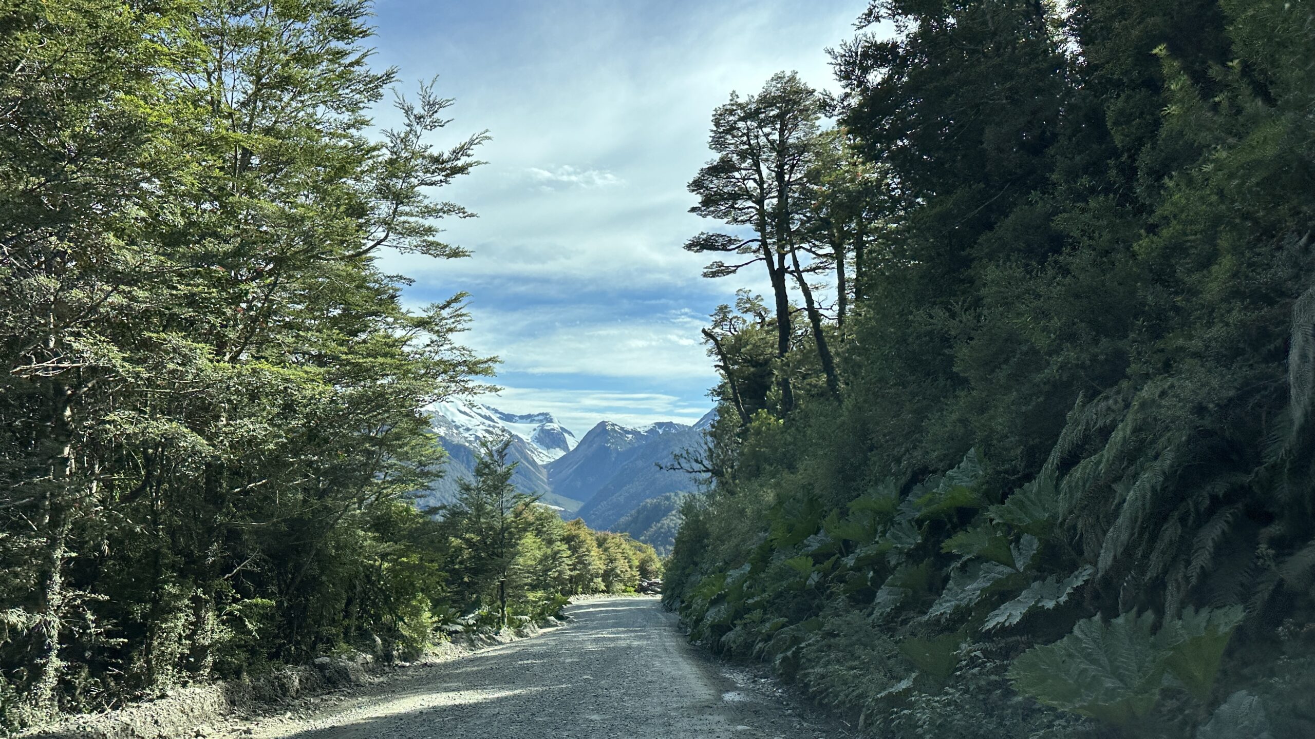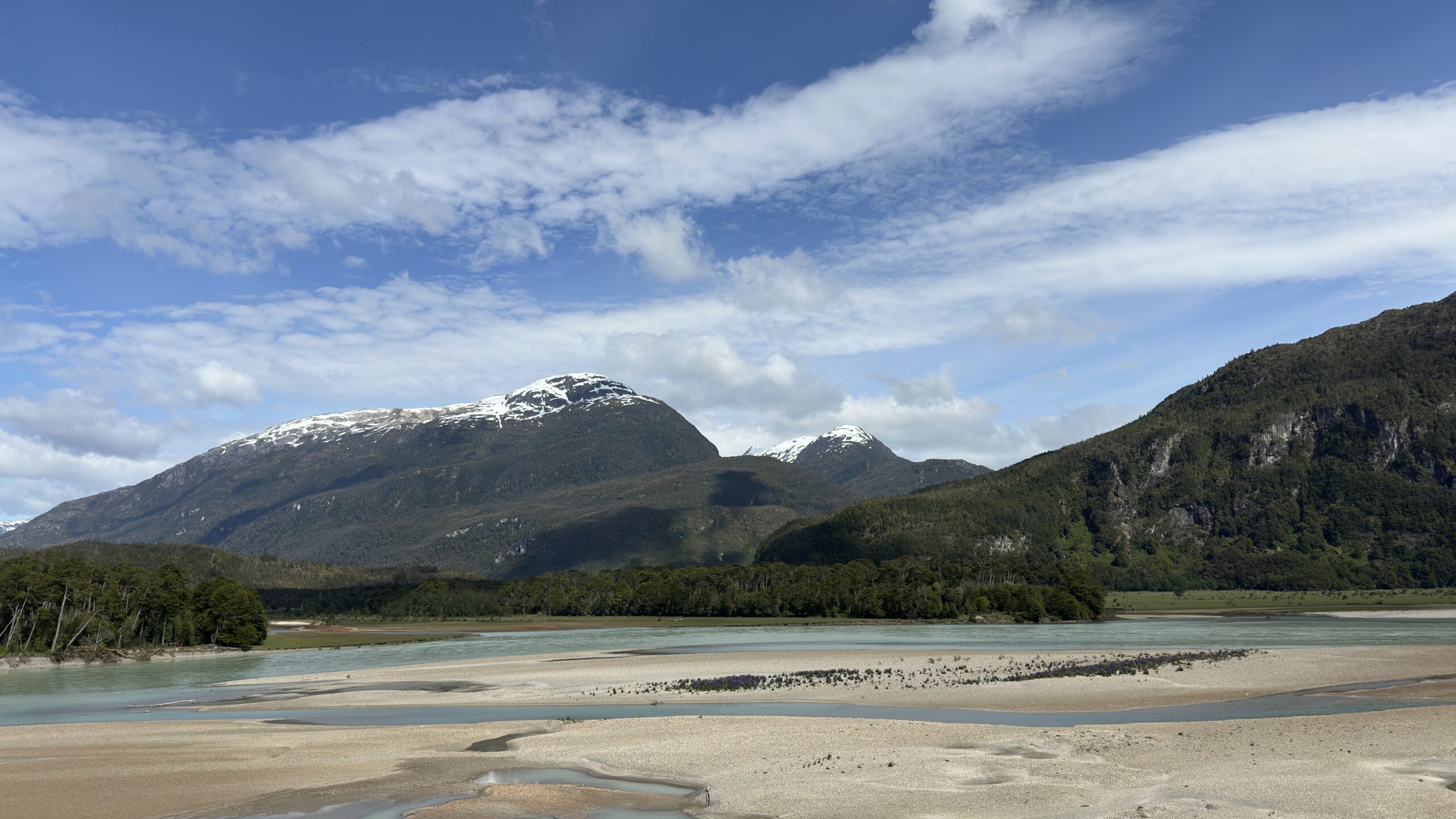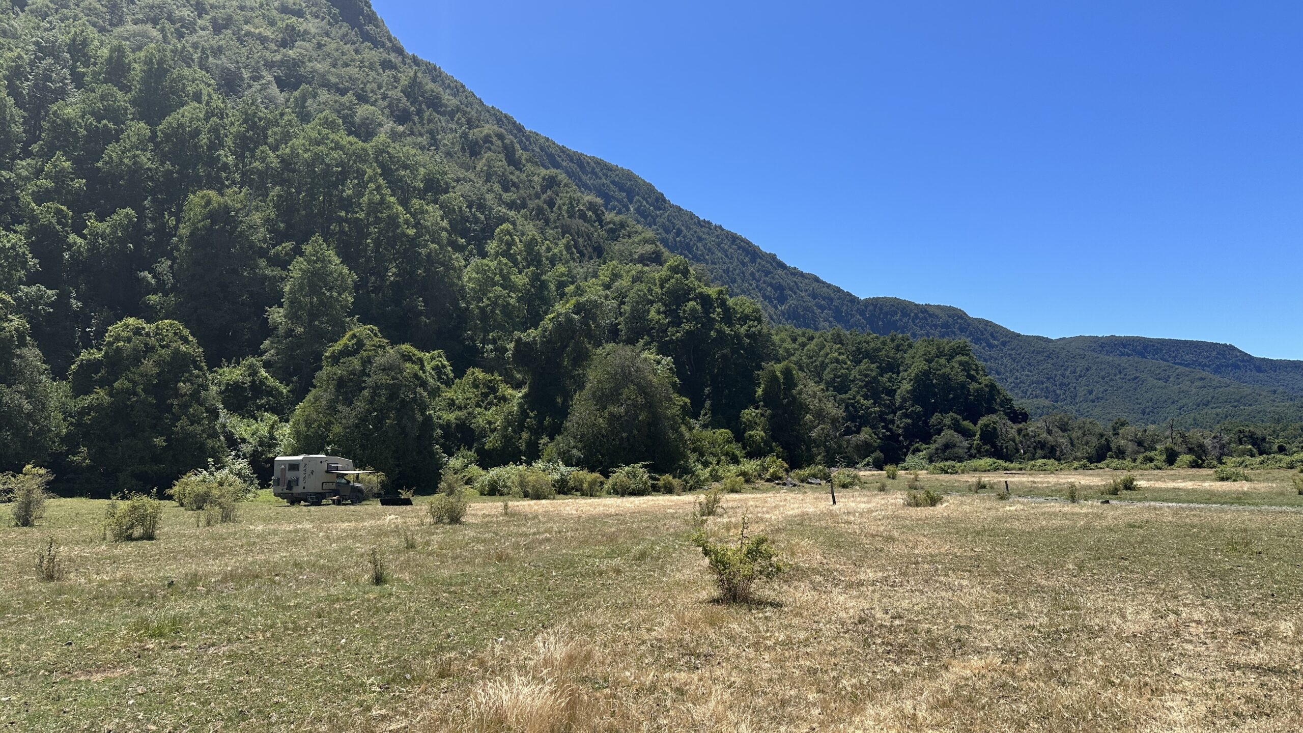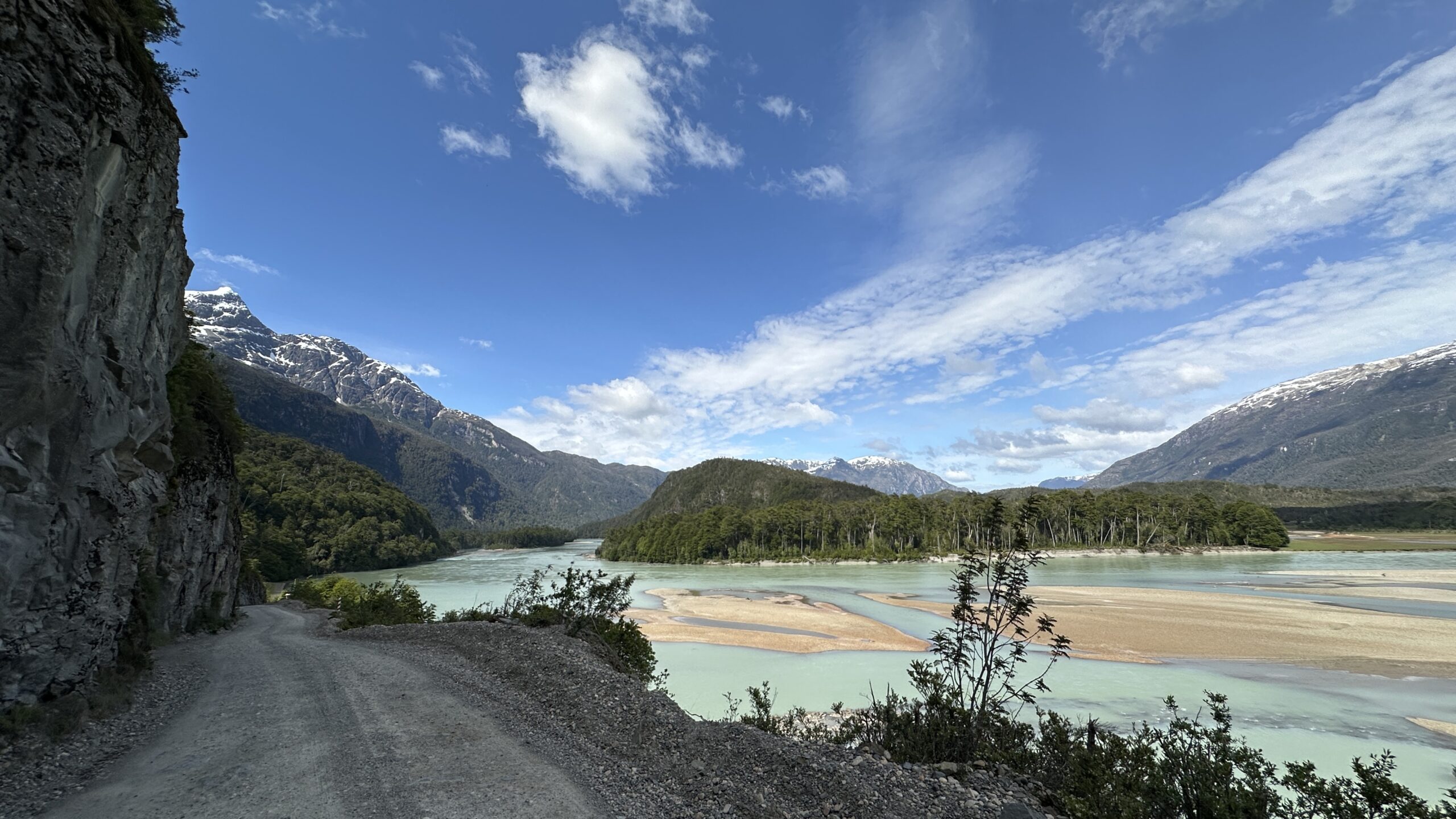 Unser Weg führt uns zurück auf die Carretera Austral 7. Die Landschaft ist einfach wunderschön. Sattes grün, rauhe Felsen, sanfte Berge. Wir fahren durch einen Wald mit riesigen Bäumen. Sie sehen für uns zumindest riesig aus, da wir lange nicht so einen Anblick hatten. Dann wieder öffnet sich der Blick auf den Fluss und die Berge.