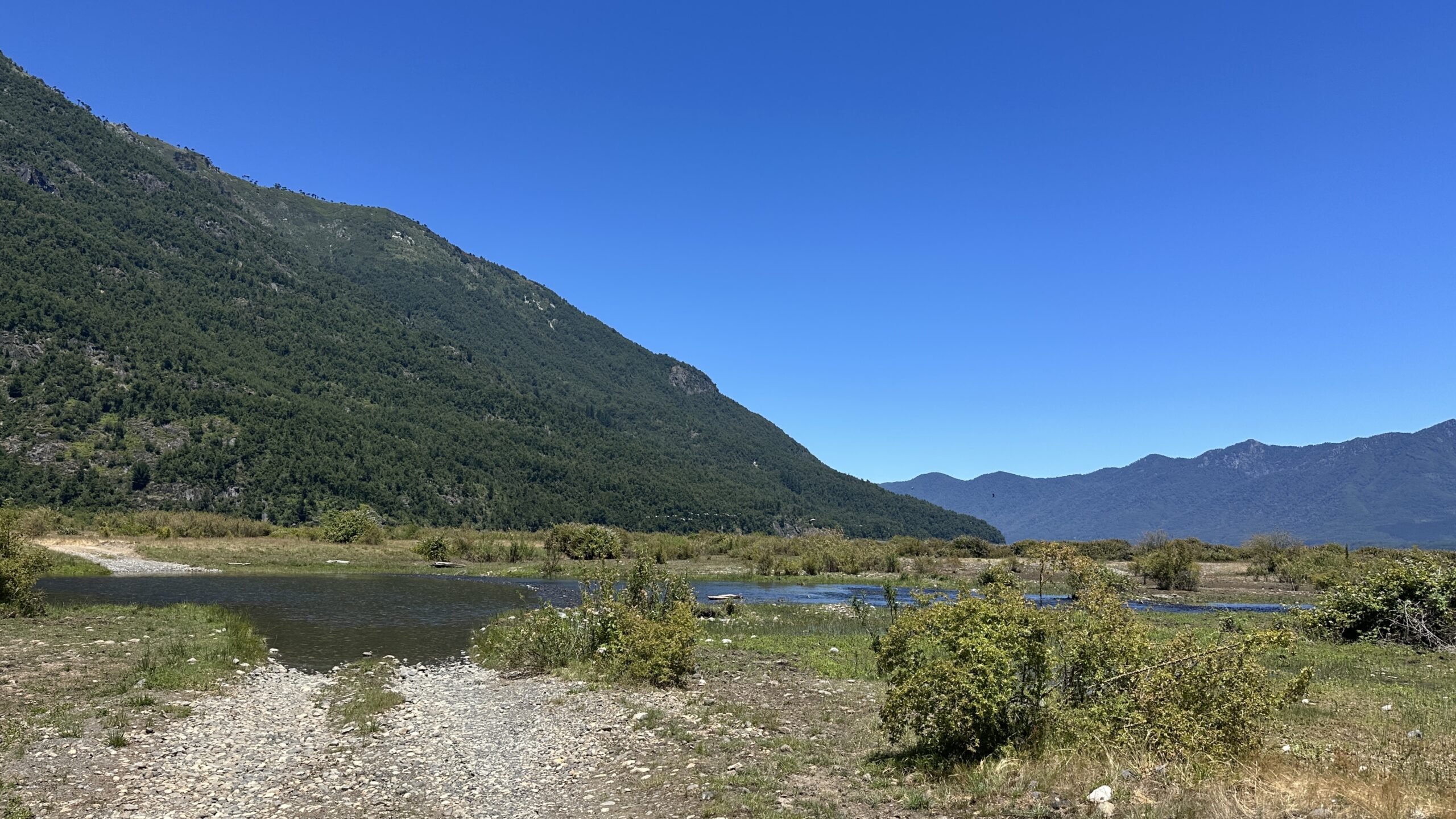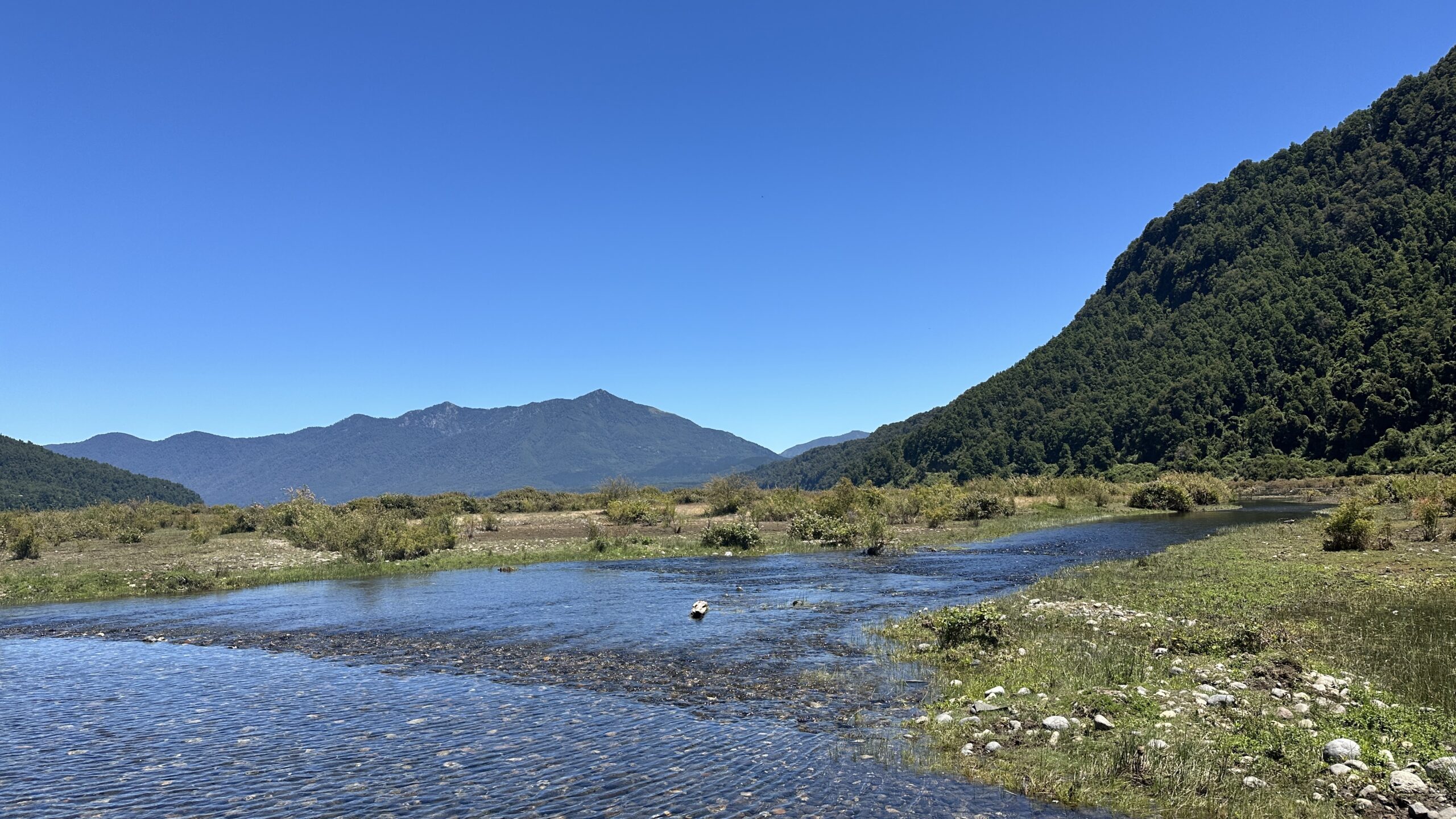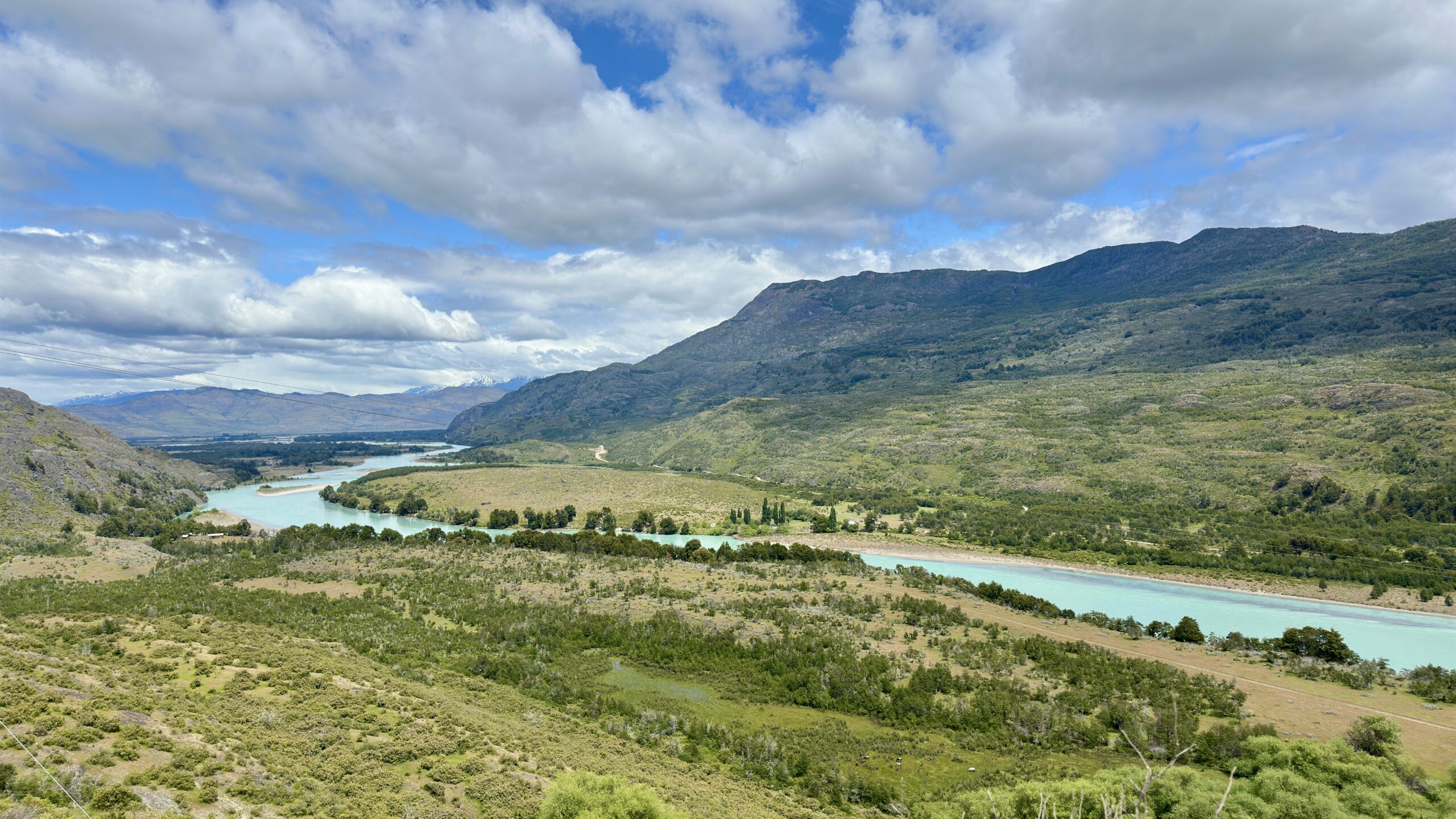 Unser Weg führt uns zurück auf die Carretera Austral 7. Die Landschaft ist einfach wunderschön. Sattes grün, rauhe Felsen, sanfte Berge. Wir fahren durch einen Wald mit riesigen Bäumen. Sie sehen für uns zumindest riesig aus, da wir lange nicht so einen Anblick hatten. Dann wieder öffnet sich der Blick auf den Fluss und die Berge.
