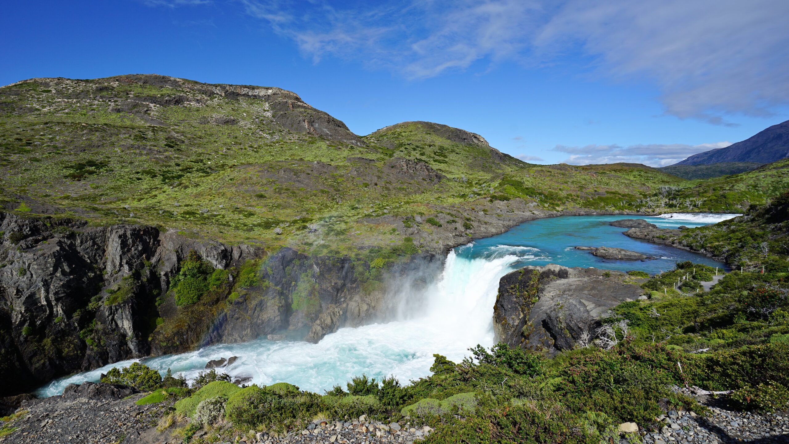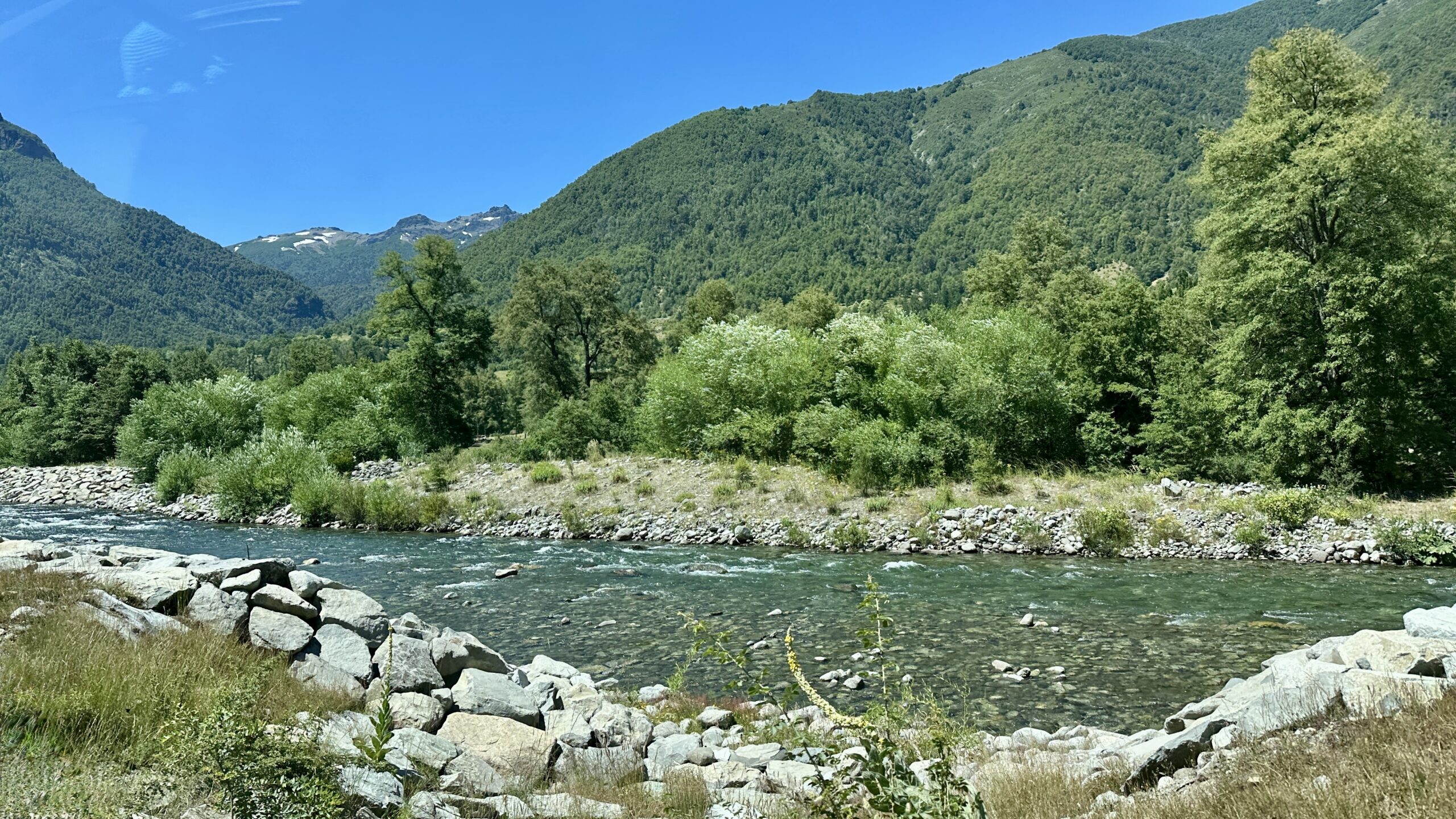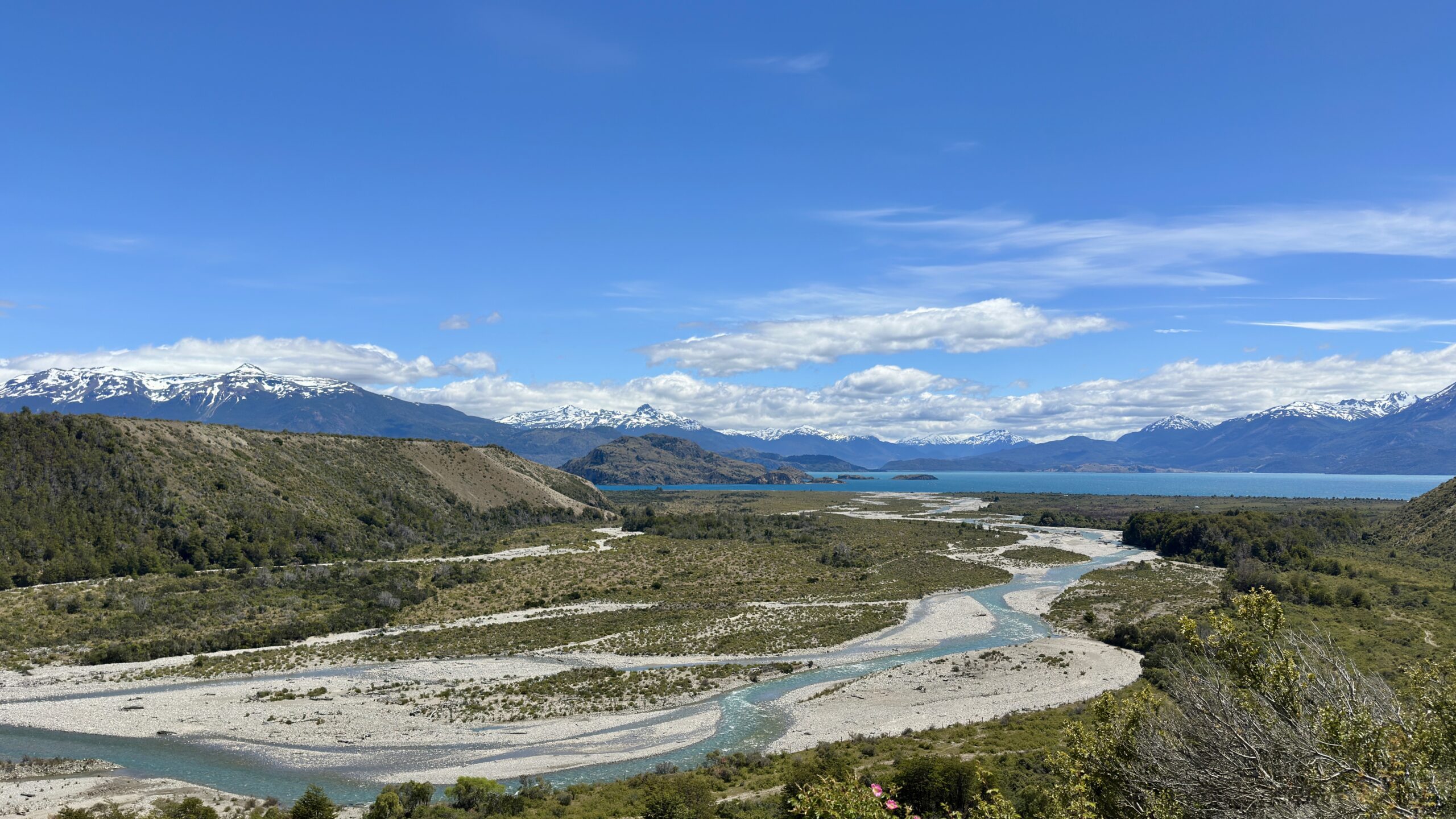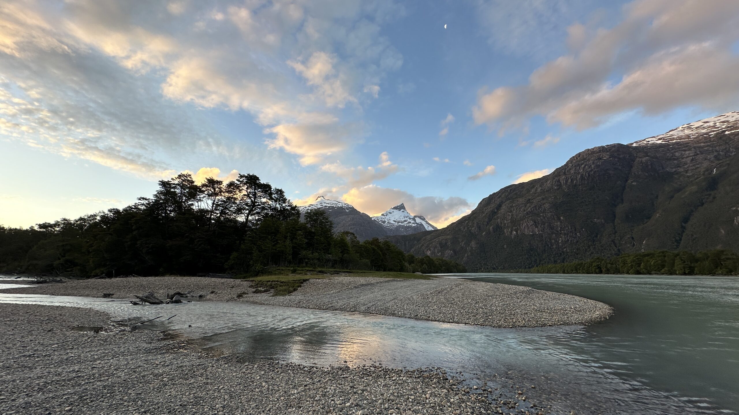 Unser Weg führt uns zurück auf die Carretera Austral 7. Die Landschaft ist einfach wunderschön. Sattes grün, rauhe Felsen, sanfte Berge. Wir fahren durch einen Wald mit riesigen Bäumen. Sie sehen für uns zumindest riesig aus, da wir lange nicht so einen Anblick hatten. Dann wieder öffnet sich der Blick auf den Fluss und die Berge.