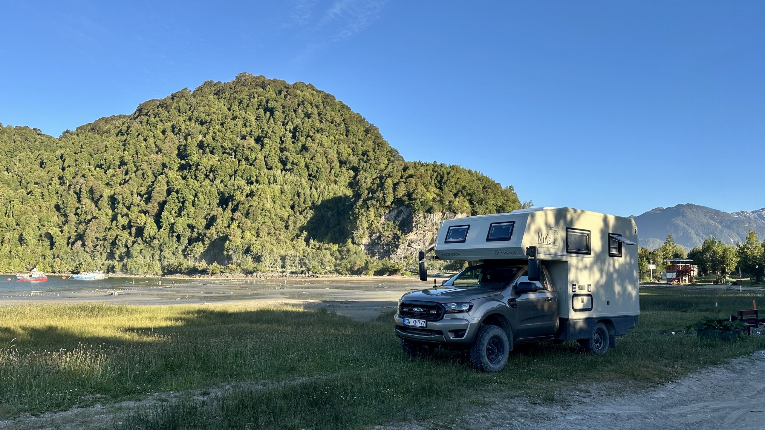 Die Fähre geht heute Abend. Um 18:30 Uhr kommt jemand zum vermessen von Bumba. Länge notiert und ab zum Häuschen und Bumbas Überfahrt bezahlen. Unser Fährkosten haben wir bereits beglichen. Morgen um 5:00 Uhr legt dann die Fähre ab. Es geht durch die chilenischen Fjorde. Geschlafen wird im eigenen Auto, was natürlich wunderbar ist.
