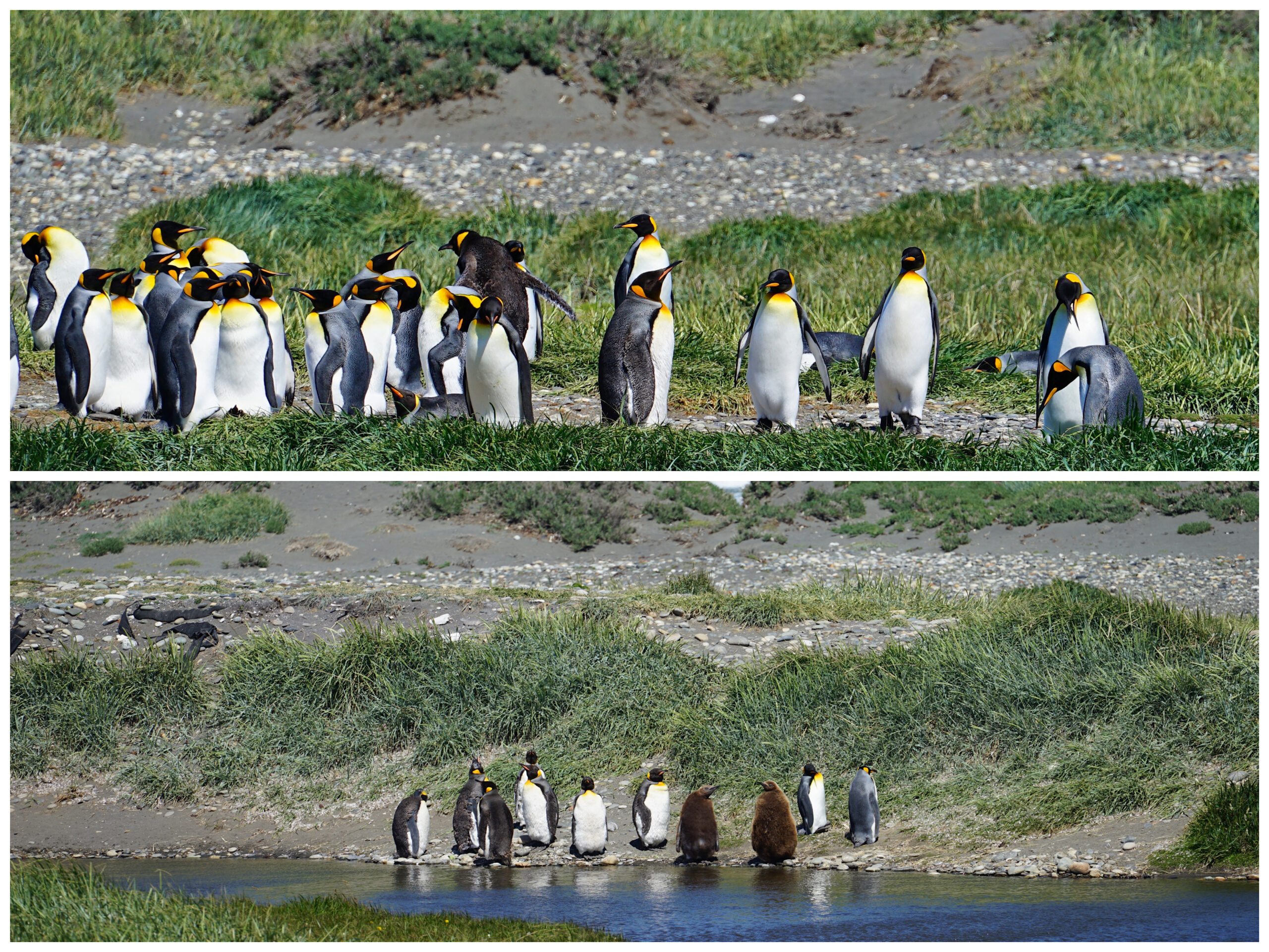 Wir werden von einer Mitarbeiterin begrüßt, die Englisch spricht. Eine Seltenheit und wir freuen uns. Eine kurze Einweisung was wir dürfen und was nicht, dann geht es schon los zum Aussichtpunkt 1. Wie in Afrika ist es ein Unterstand mit Sichtöffnungen. Ca. 100m von den Pinguinen entfernt, so dass wir sie nicht stören. Es sind sogar große Ferngläser montiert, so da kann unser Kleines nicht mithalten. Wenn man durch das große Fernglas schaut hat man das Gefühl direkt neben dem Pinguin zu stehen. Der Kaiserpinguin ist der zweitgrößte Pinguin mit einer Größe von 85 cm bis 95 cm. Viel ist hier allerdings wenig los. Sie stehen da, schauen sich ein wenig um, ein Paar hat seine Köpfe nebst Hälse nach hinten gebogen und sind somit in einer Schlafposition. Für uns sieht es eher aus, als ob ihnen jemand den Hals umgedreht hat. Das soll erholsam sein? Das Gefieder und die Farben sind sehr schön und dann fällt der Blick auf drei