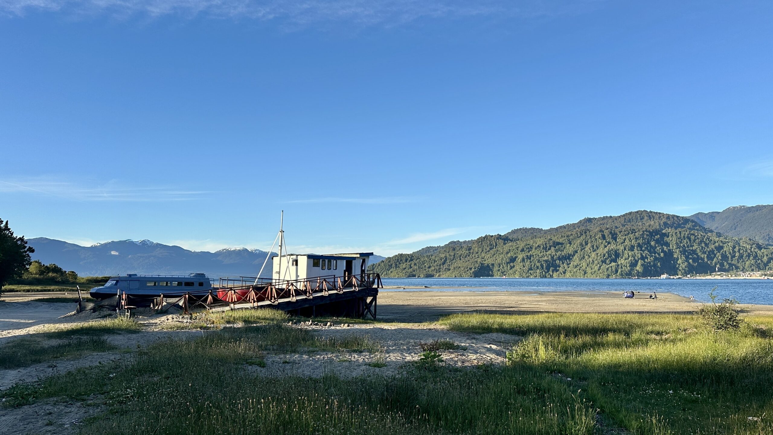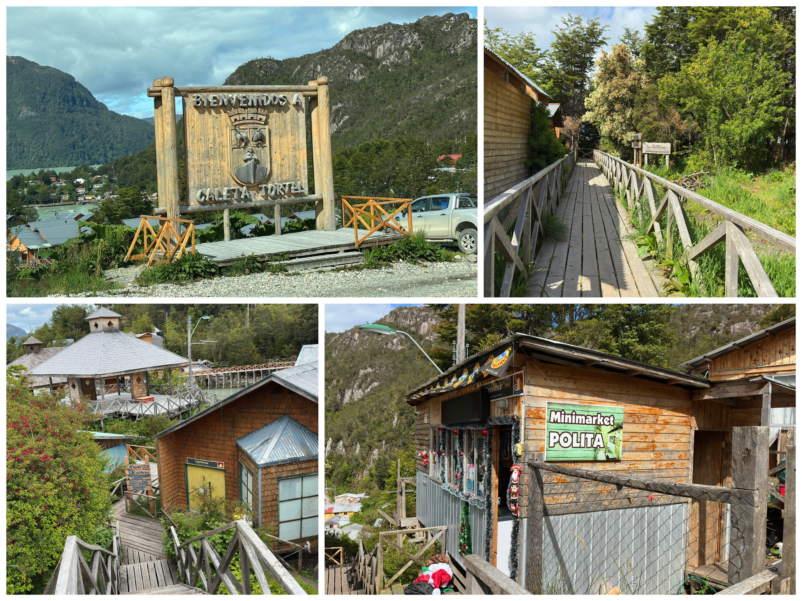 Ein kurzer Stopp am kleinen Hafen von Caleta Tortel. Ein Küstendorf, das hauptsächlich auf Stelzen steht. Es gibt keine konventionellen Straßen, stattdessen gibt es Holzstege.
