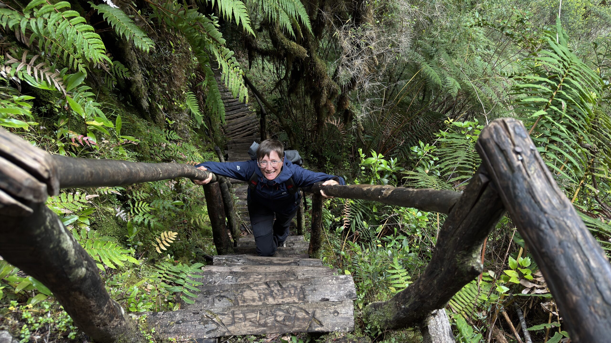 Wir bleiben 15 Minuten und treten dann den Rückweg an. Das wir den gleichen Weg hochgelaufen sind fällt uns nicht auf. Es sieht alles anders aus. Der Wald wird nochmal neu entdeckt und dann hat irgendjemand irgendwo Schleusen geöffnet und uns kommen ständig Menschen entgegen. Zum Glück sind wir bereits am absteigen und fast am Ende.