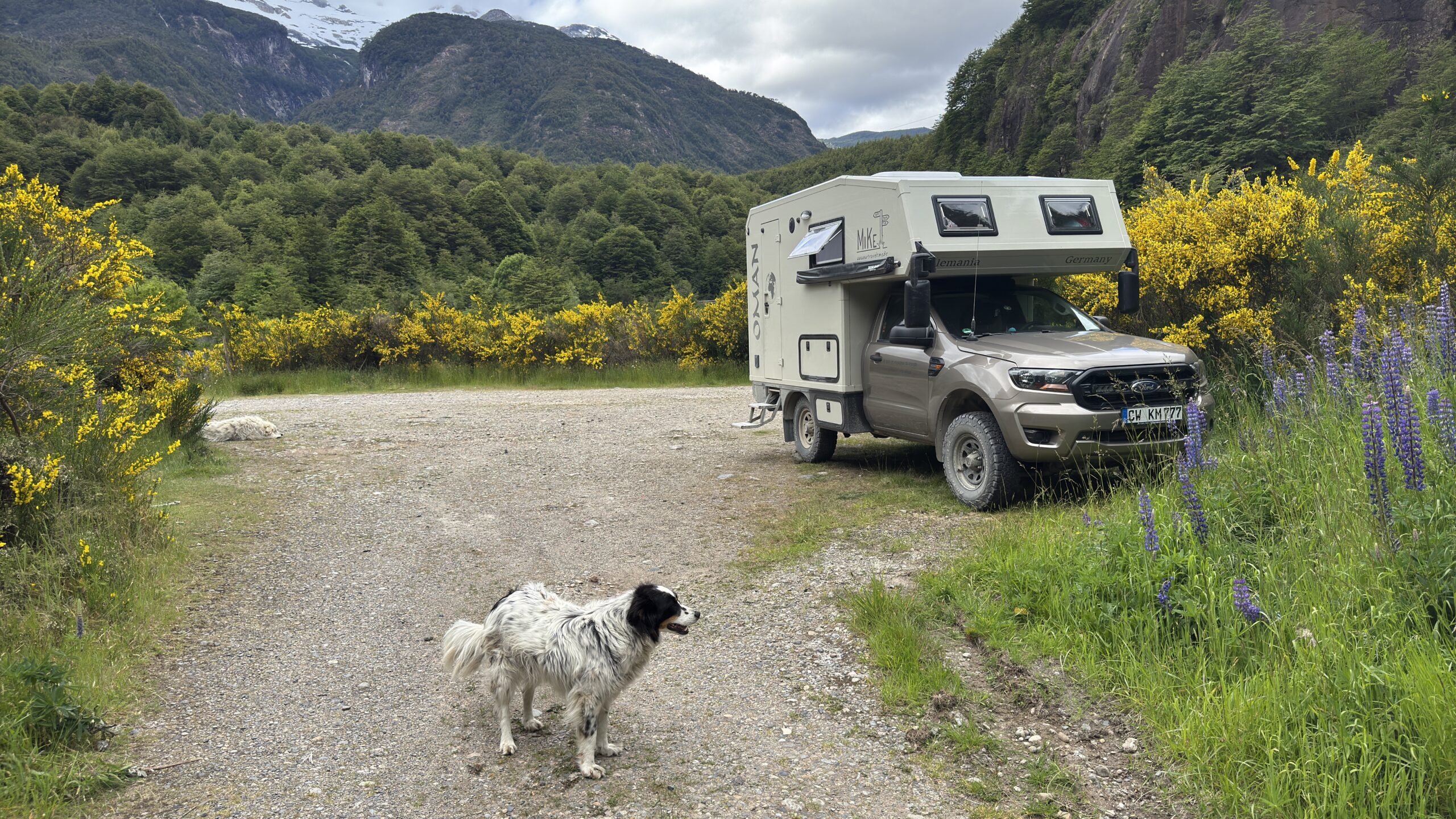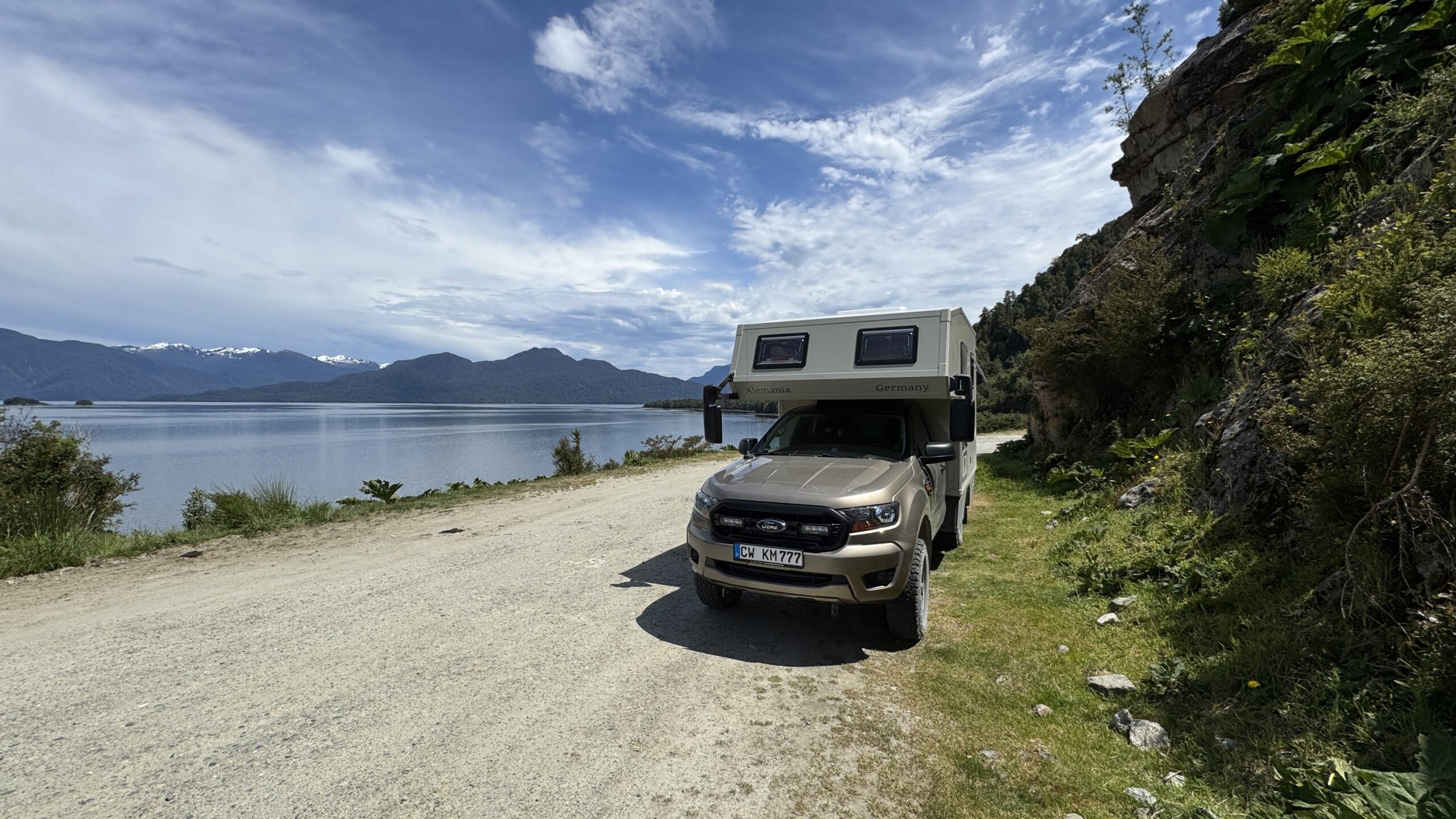 Jetzt sind wir auf der Carretera Austral 7. Die Landschaft begeistert uns jetzt schon. Wir werden heute die Ruta 7 nur ein Stück fahren um dann auf die X-904 zu fahren zu dem kleinen Ort Caleta Tortel, wo unsere Fähre einen Halt eingelegt hatte. Aufgrund der Bauweise möchten wir uns dieses Dorf auch vom Land aus anschauen.