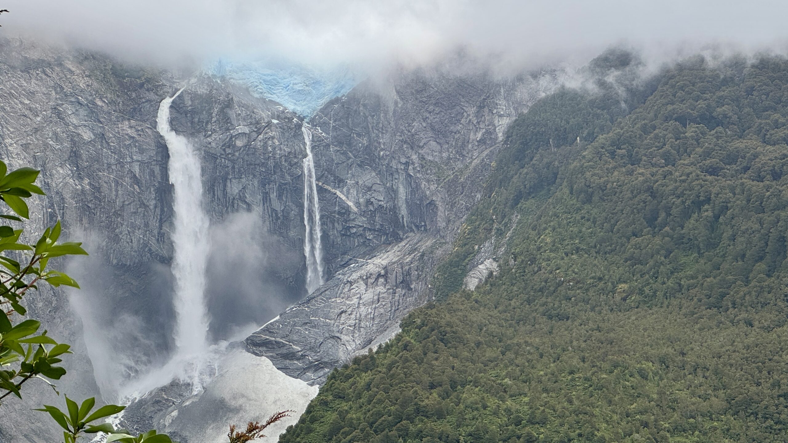 Wir sind bei der Attraktion des Park angekommen, dem „Queulat Hanging Glacier“, der durch Wolken nur einen Teil seiner Schönheit präsentiert.