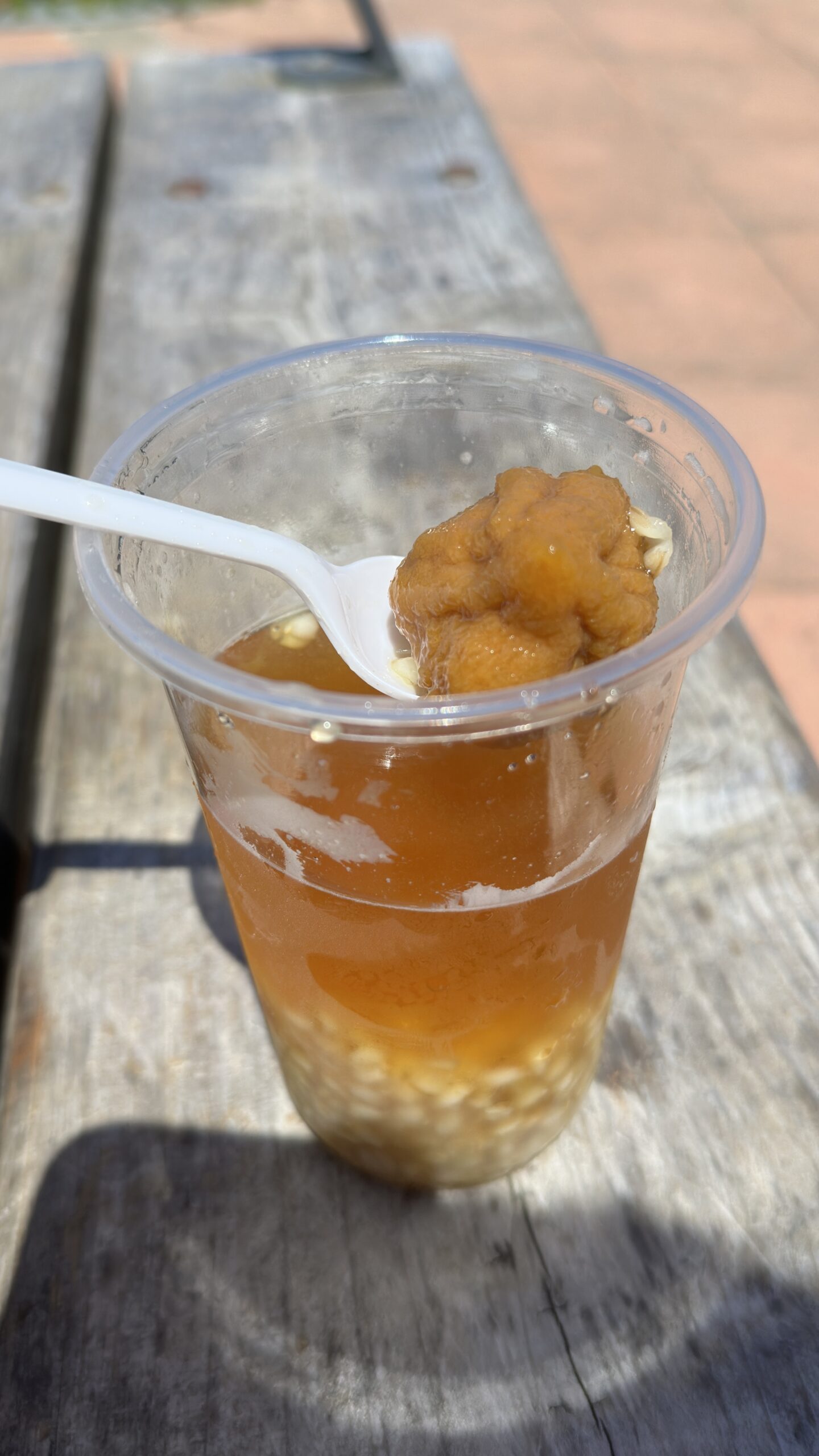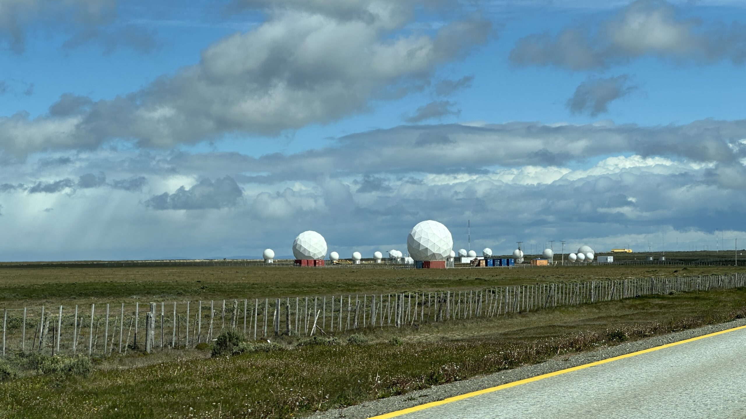 Am Wegesrand sehen wir noch große weiße Gebäude, die wie überdimensionale Golfbälle aussehen. Wofür sie sind, habe ich nicht recherchieren können. Das ist so wie mit diesen gelben, runden Dingern, die an Bäumen direkt an den Ästen / Rinde wachsen und ich einfach nicht finde, was es ist.