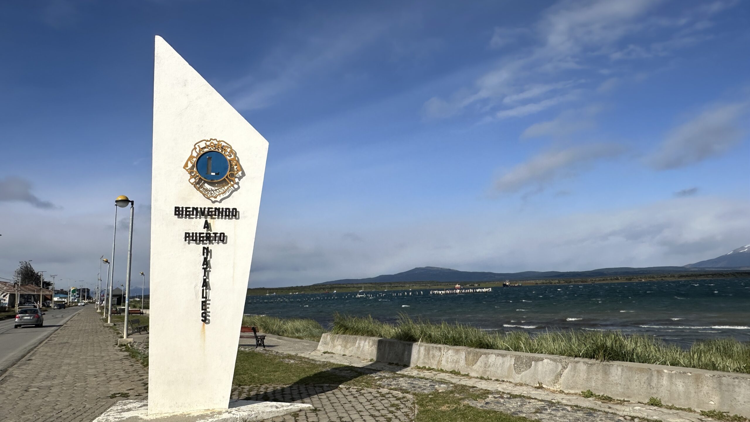 Langsam geht es Höhenmeter für Höhenmeter runter und wir fahren in die Stadt Porvenier ein. Das ist das Dritte mal auf dieser Reise, dass wir eine so vermüllte Anfahrt in die Stadt haben. Überall fliegen Tüten, Möwen kreisen über diesen Bereich und es riecht. Warum ist das hier so verdreckt und müllig und in anderen Städten gibt es keine Probleme? Warum also hier? Es entzieht sich unserer Kenntnis. Die Tankstelle am Orteingang versorgt unseren Bumba und wir fahren weiter in den Ort. Ein kleiner, bunter Spielplatz am Wasser ist zu sehen, ein Gebäude in gelb weiß im Stil eines Kolonialgebäude. Der Rest der Häuser ist schlicht und einfach. Hier ist alles sauber. Kein Müll der durch die Straßen weht. Der Müll war nur am Ortseingang. 4 km weiter liegt Bahía Chilot. Ein paar Häuser, ein großes Firmengelände und das Fährhaus und Anleger, mehr ist hier nicht.