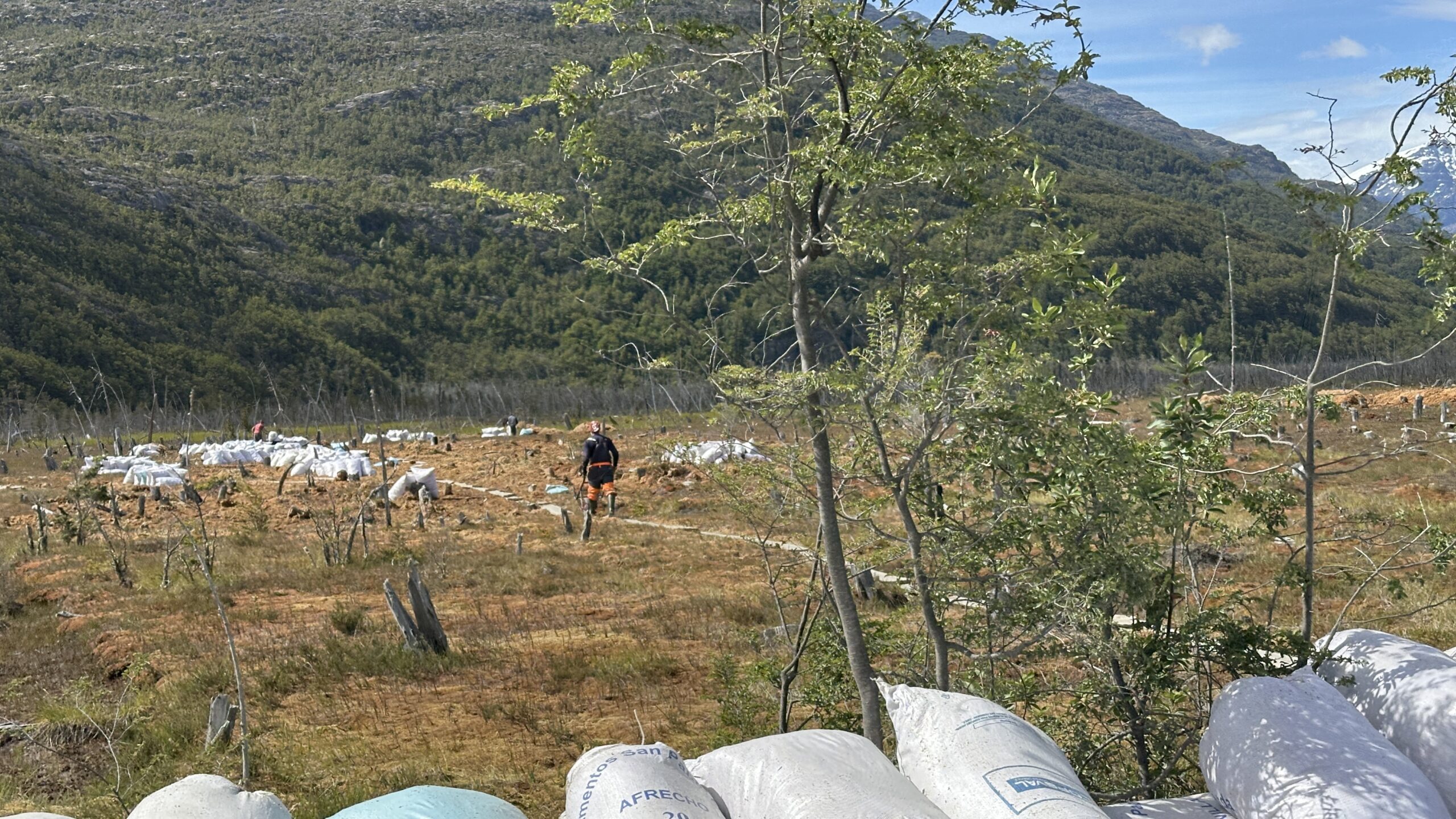 Auf den Hängen sieht man teilweise totes Holz liegen. Sie sind teilweise schwarz, sehen wir angekokelt aus. Ja, das sind sie auch. Der Brand ist schon ein paar Jahre her, die Flora erholt sich aber bis neue Bäume wachsen, dauert es seine Zeit.