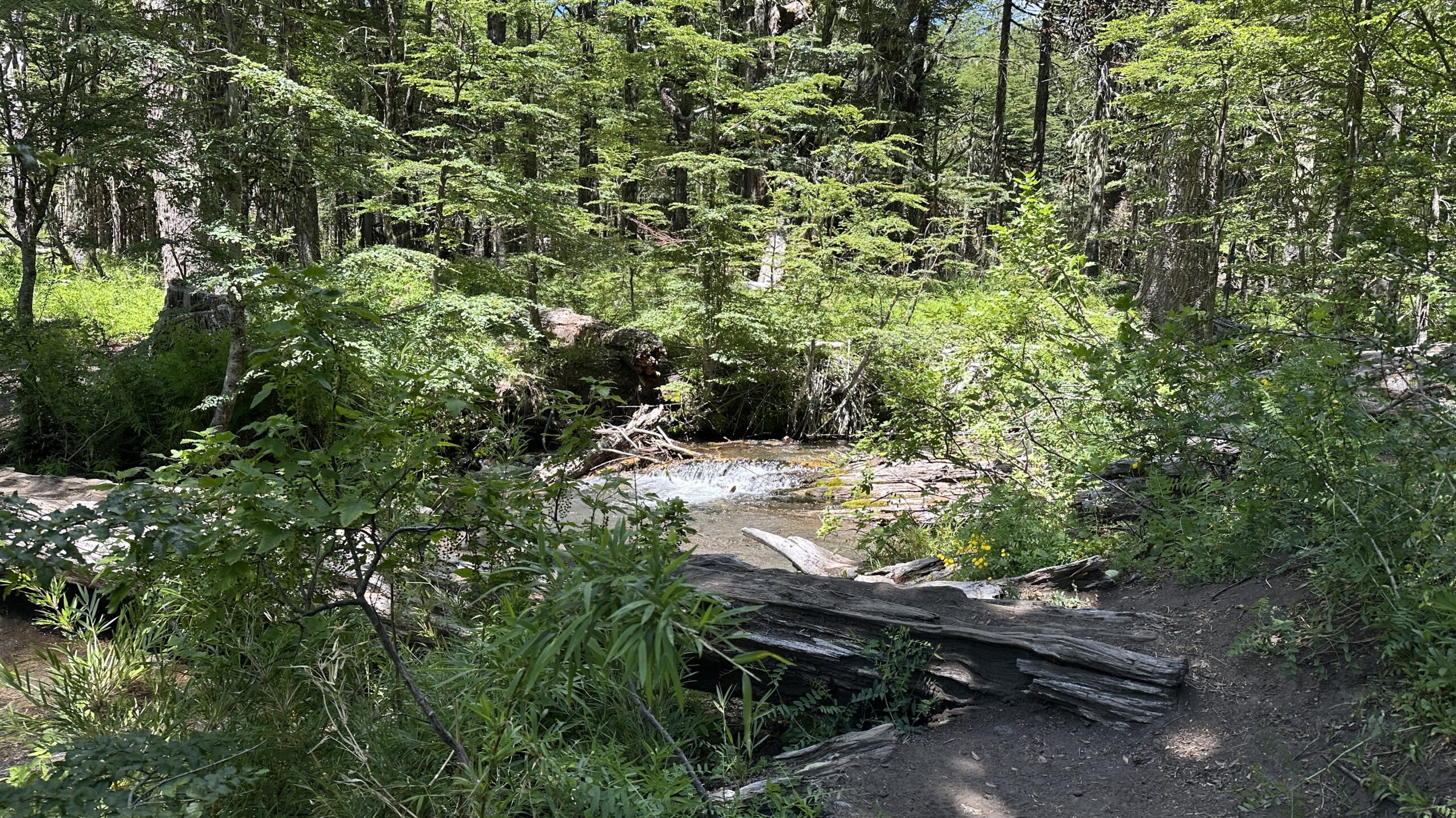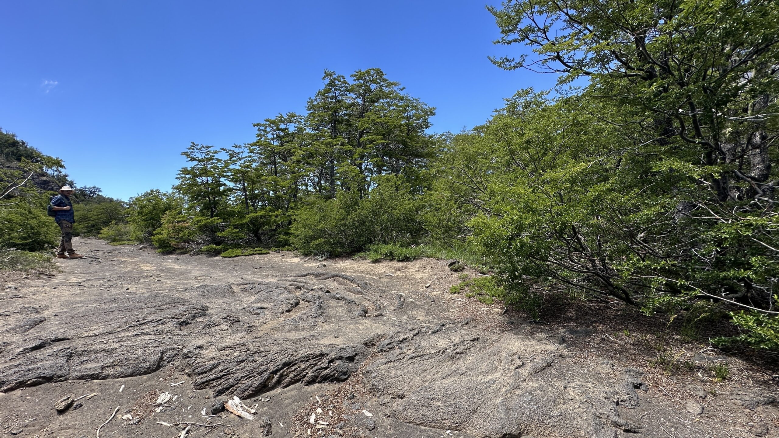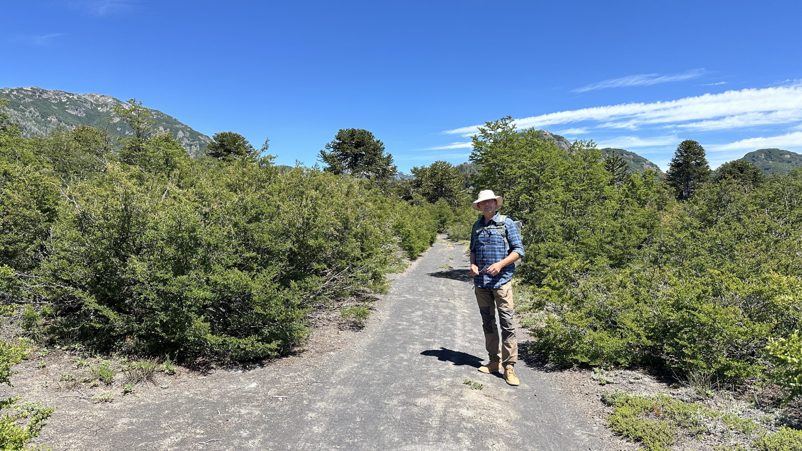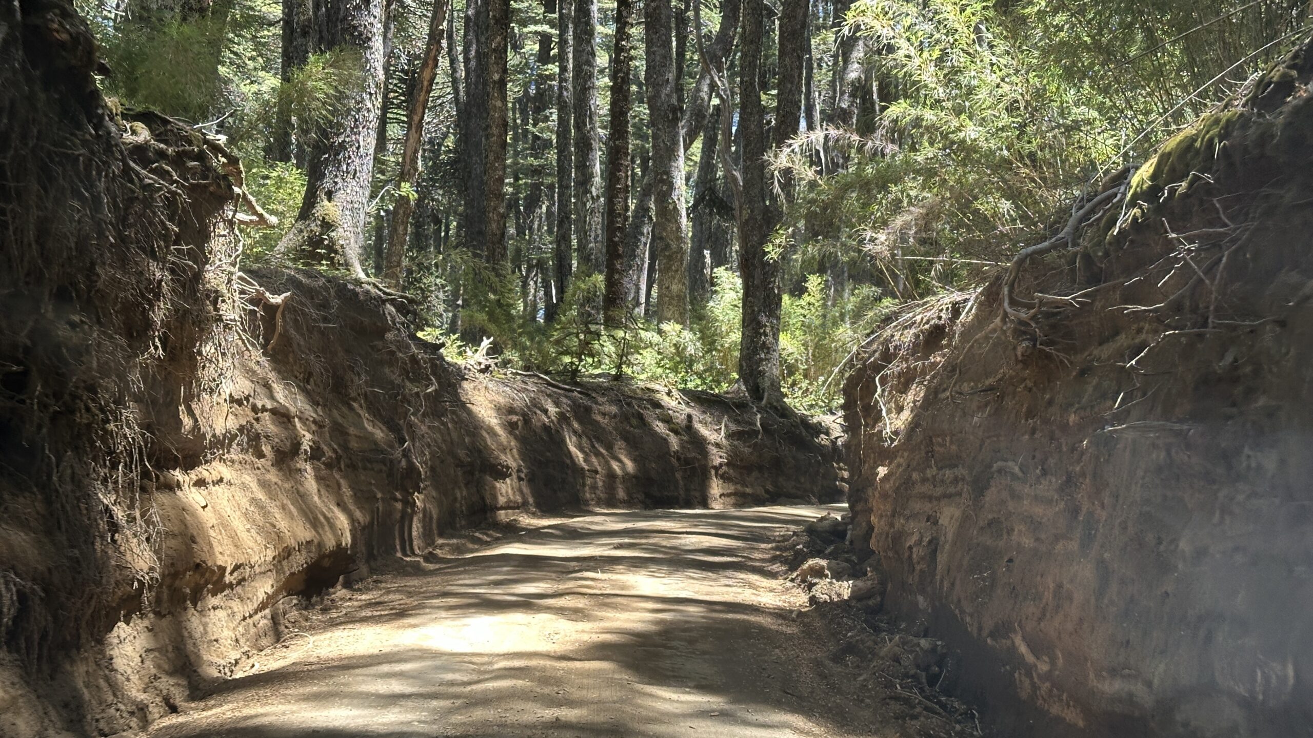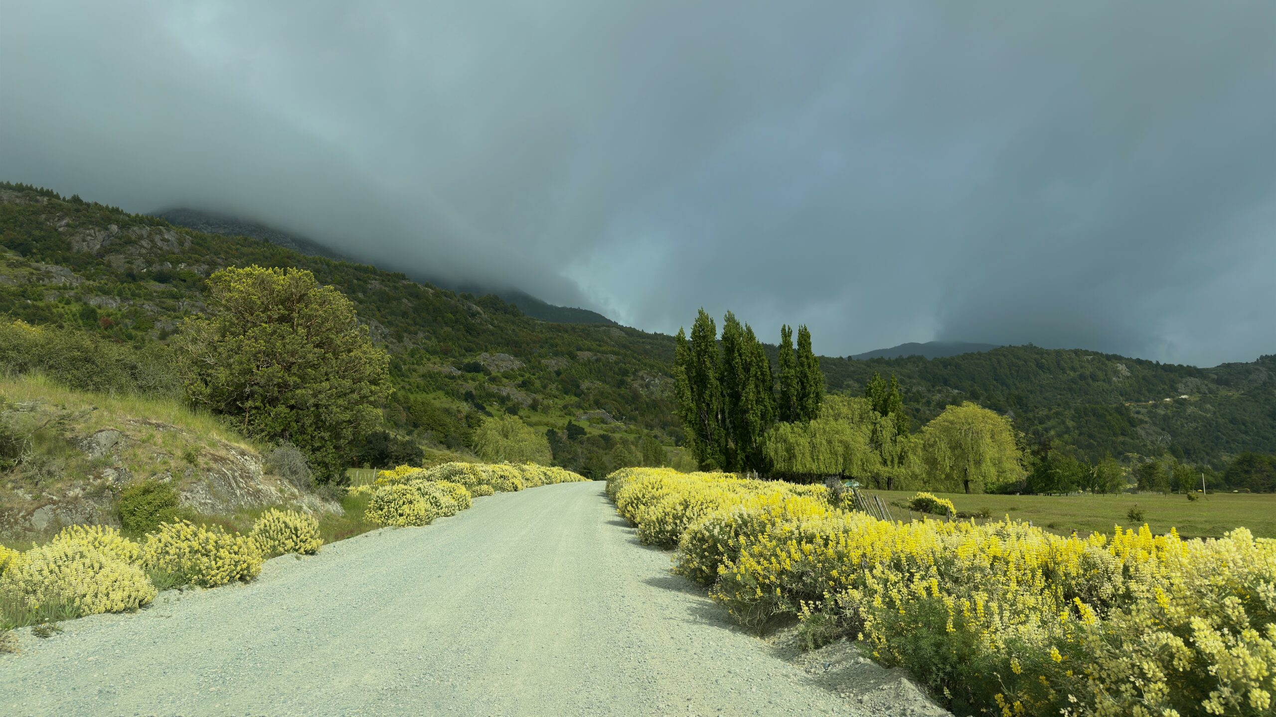 Wir fahren Richtung Norden und wollen über die nächstgelegene Grenze nach Argentinien. Die R-925-S führt durch den Nationalpark mit dem Vulkan Llaima und Sierra Nevada. Am Eingang des Parks sollen wir 30,00 € Eintritt bezahlen. Wir möchten nur durchfahren, das erläutert Micha den Rangern und eine junge Frau kommt zur Hilfe. Sie kann nicht nur Englisch, nein, sie kann sogar Deutsch. Bis 2019 hatte sie Deutsch und jetzt freut sie sich über jede Gelegenheit in Deutsch sprechen zu können. So gelingt die Verständigung noch besser und wir haben ein Zeitfenster von 1 Std. in der wir den Park durchfahren dürfen. Das Zeitfenster einzuhalten wird bei diesen Straßenverhältnissen nicht möglich sein. Wir kennen ja die Pisten mit ordentlich Wellblech, Löchern und Steinen. Jetzt kommt die nächste Challenge: Löcher und Steinbrocken in einem „Tunnel“. Links und Rechts haben wir Erde, Wurzeln, schräg hängende Bäume. Dann hat man auch mal gelegentlich Gegenverkehr. Der Park selber ist landschaftlich wieder eine Wucht. Die Lavafelder, der Lavastrom der durch die Bäume geht. Die Vegetation und dann die Seen, ach ja, und der Vulkan selbst.