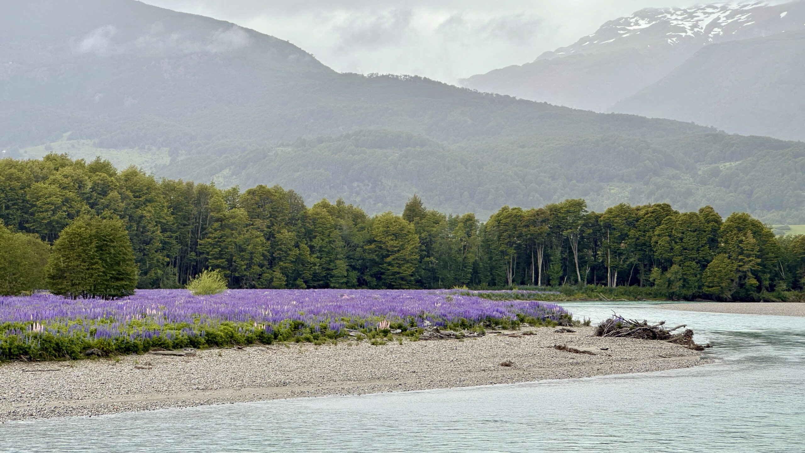 An einer Stelle gibt es einen bunten Fleck inmitten des Flussbettes. Es sind Lupinen.