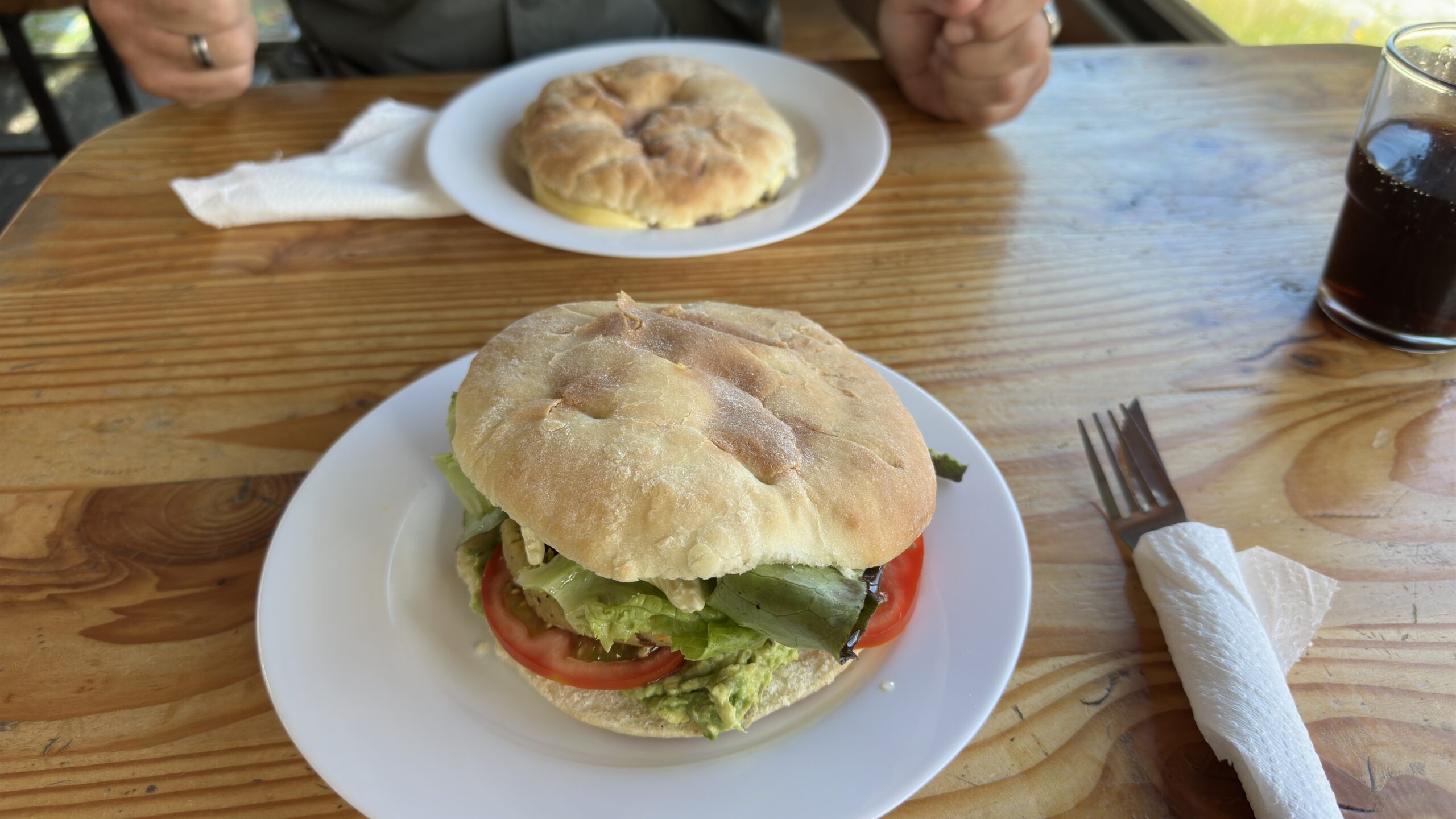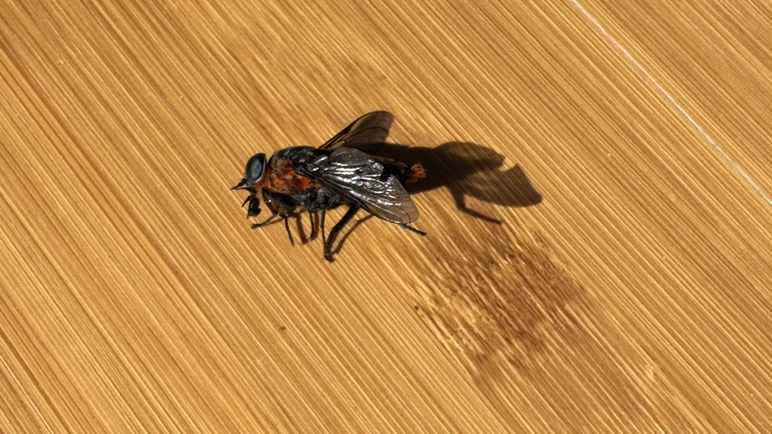 „Wollen wir draußen frühstücken?“ fragt Micha und geht vor die Tür um kurz danach wieder da zu sein. „Ich glaube, wir frühstücken drinnen“ sagt er. Anstelle der Bremsen sind jetzt kleine Fliegen da.