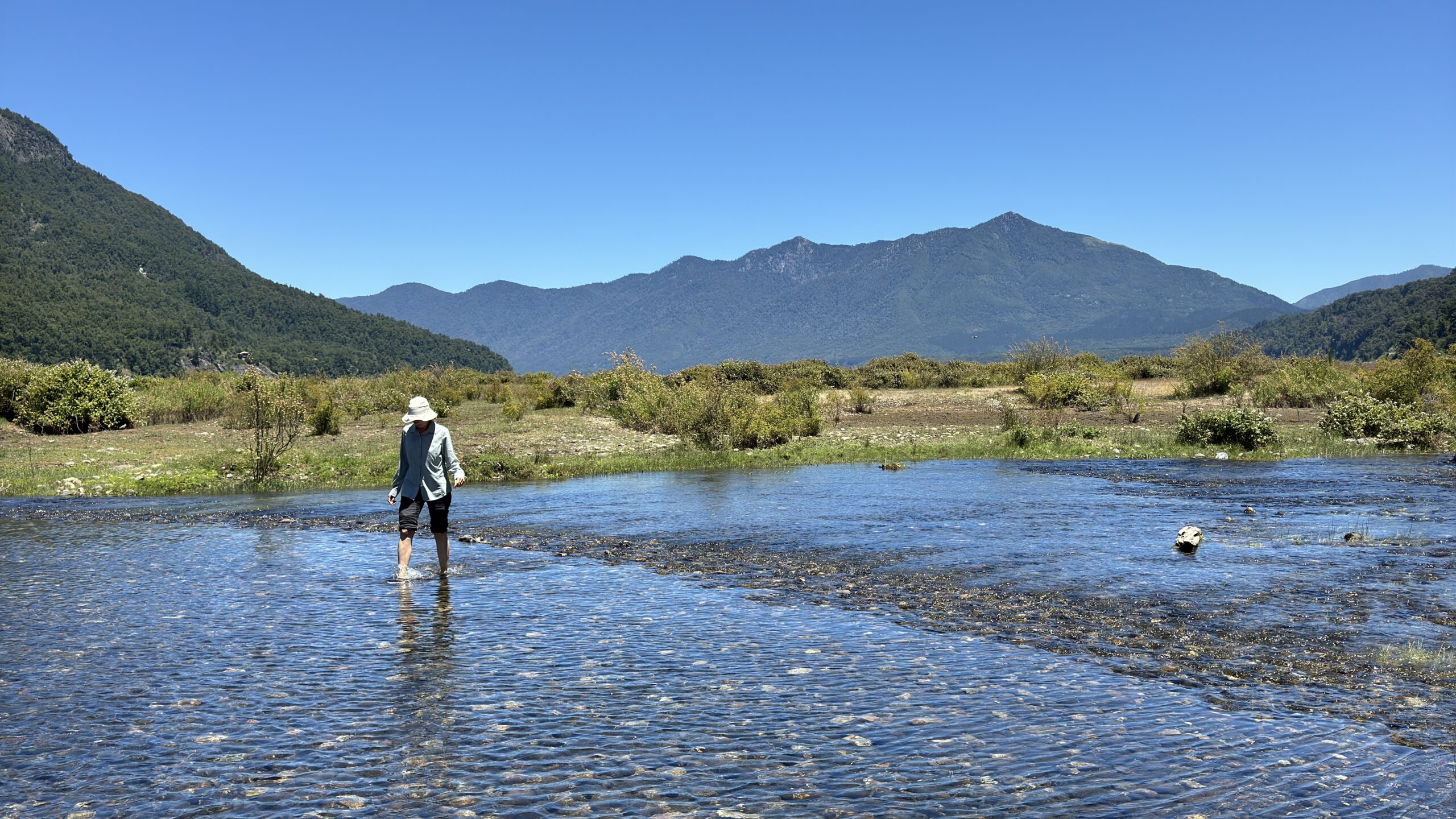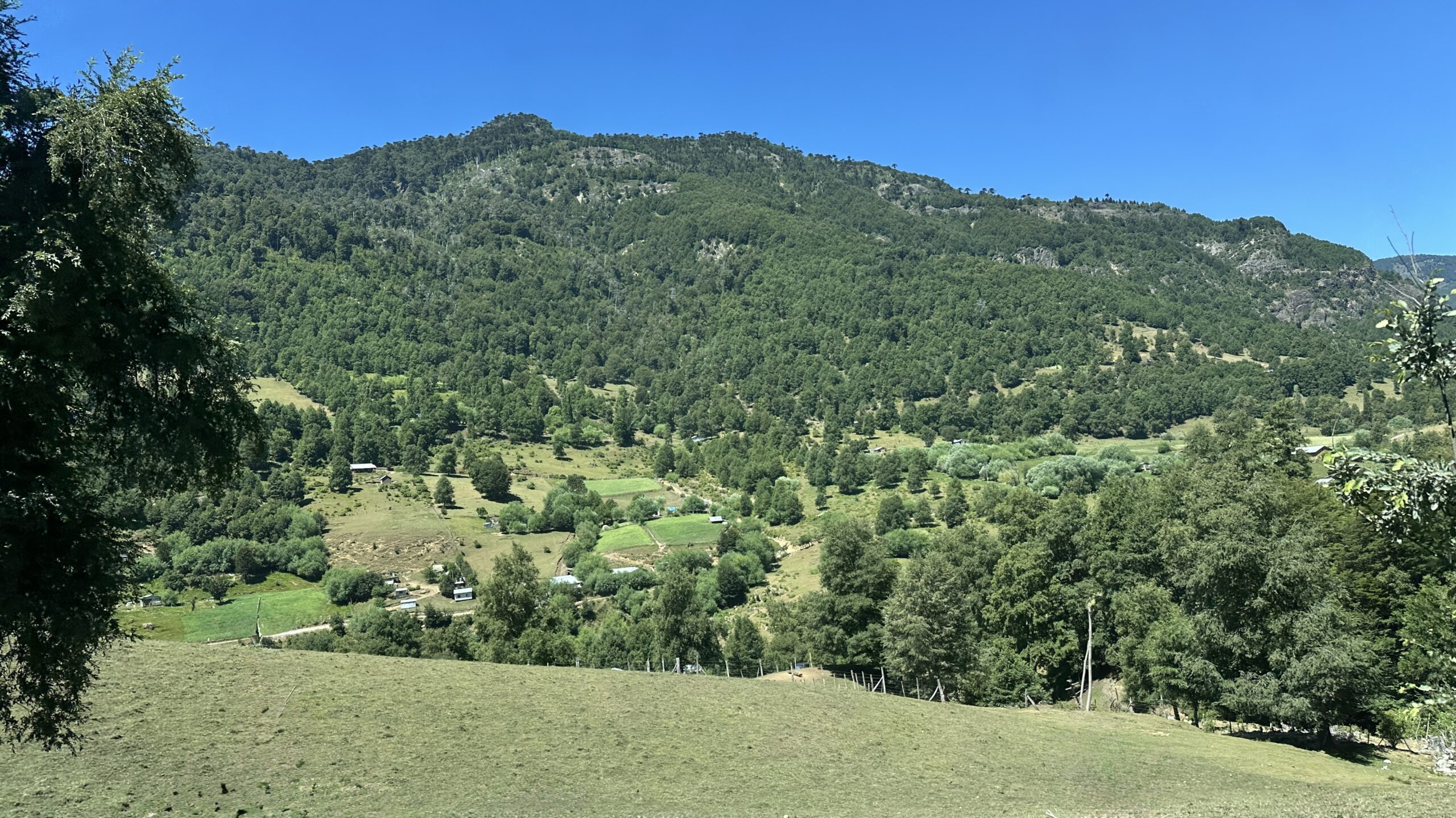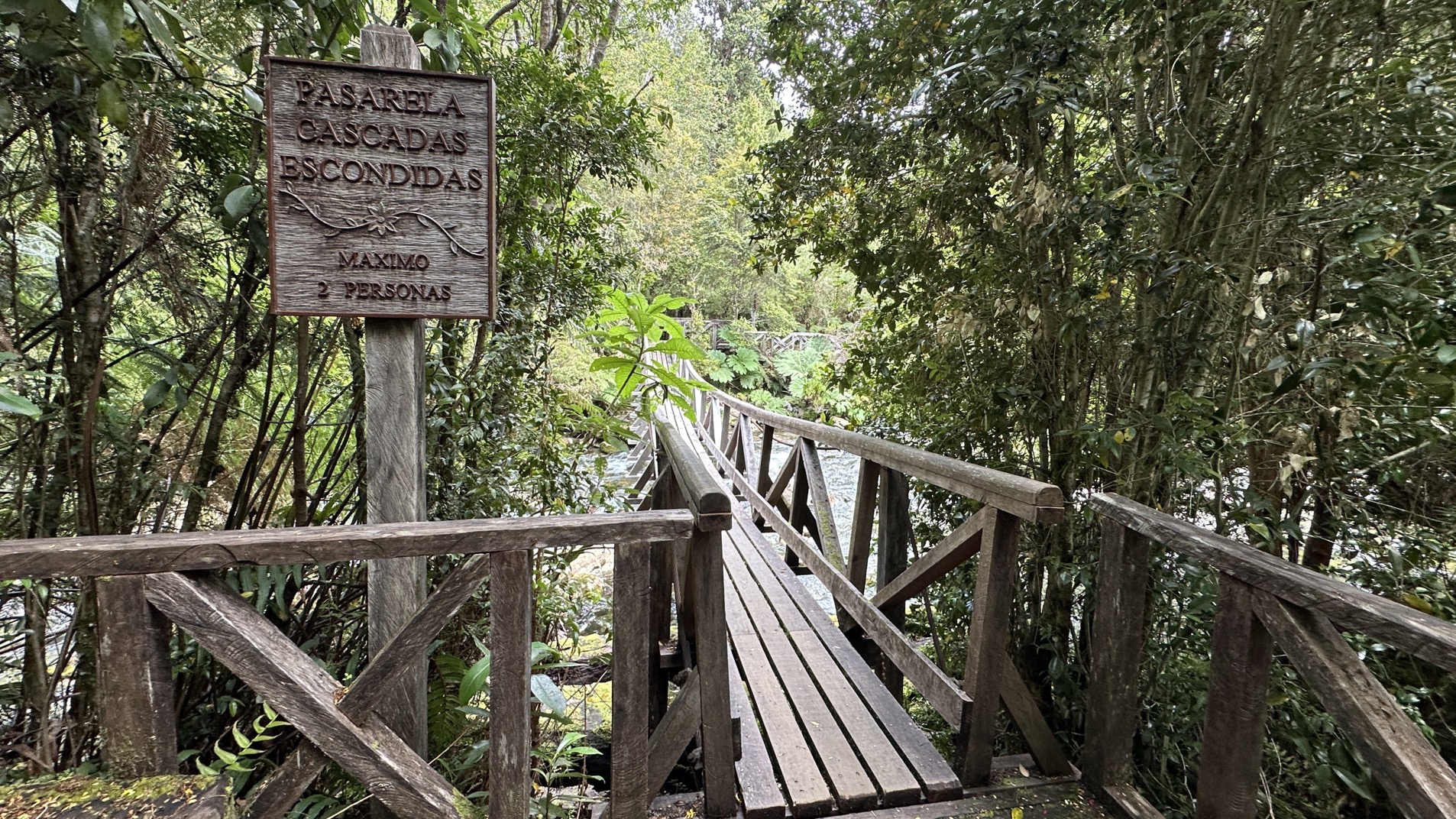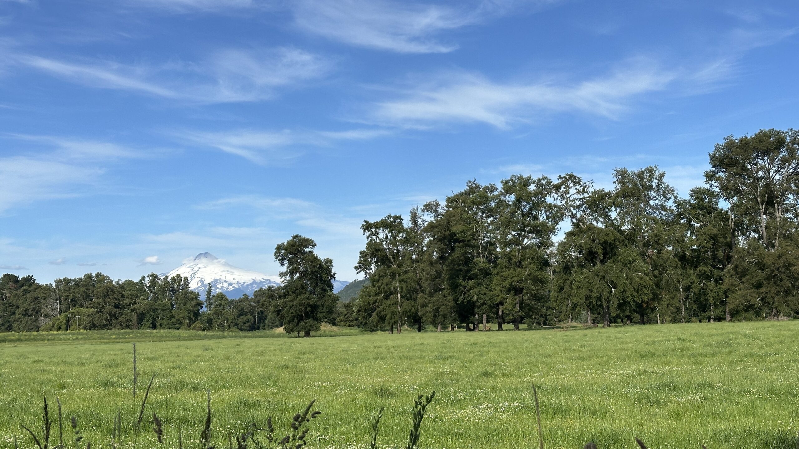 Wir fahren die Rutas – 965. Micha hatte diese Straße gewählt, da es zu unserem erwählten Stellplatz der kürzere Weg ist. Das Navi will einen ziemlichen Bogen fahren. Luftdruck runter und los geht es. Die Piste ist schlecht, die Aussicht grandios. Neben der Straße fließt ein Bergfluss, Felder und Wiesen grenzen an ihn. Verteilt stehen Häuser in dem Tal. Wunderbar. Wir sehen auch den Nevados de Sollipulli. Ein großer grauer Berg mit Schneefeldern. Die Fahrt geht über Brücken unterschiedlichster Beschaffenheit und die Piste gibt alles. Die kleinen Durchfahrten im Dorf verschaffen eine kurze Pause. Diese sind asphaltiert.
