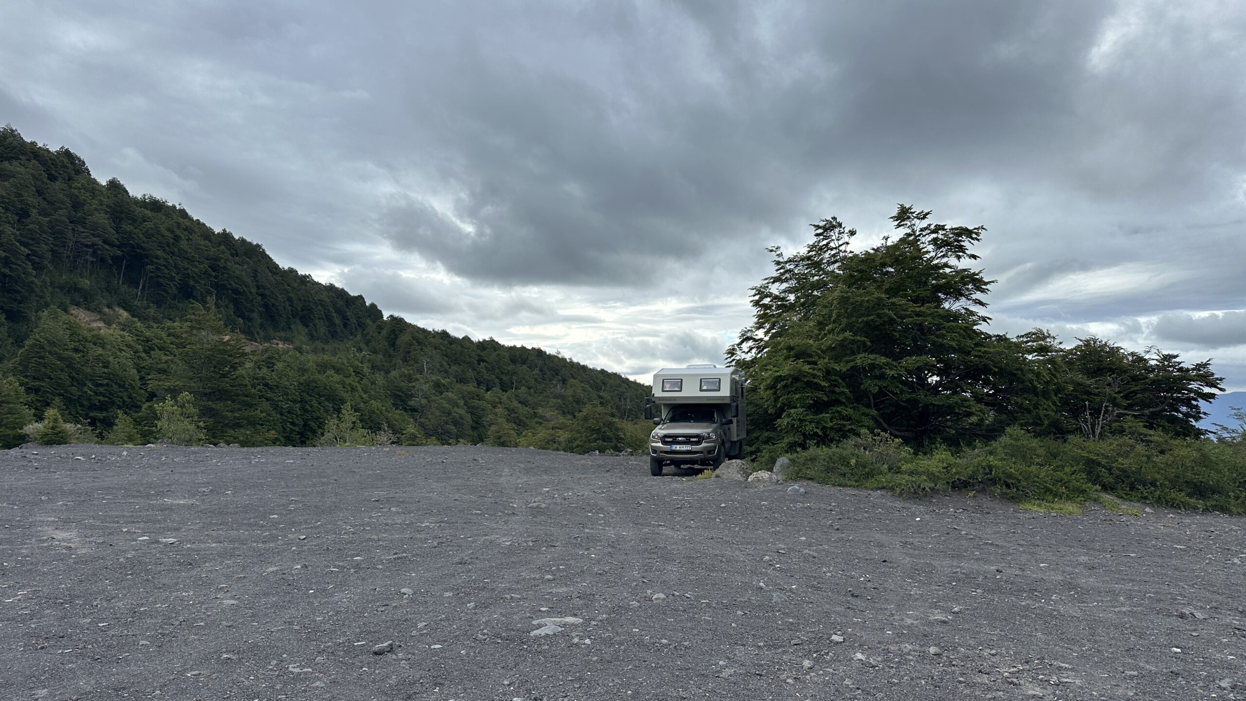 Im Parque Nacional Villarrica ist ein großer Parkplatz mit Blick auf den Vulkan. Mal wieder traumhaft dieser Ausblick. Der Untergrund ist ziemlich hügelig, so dass zum Schluss und neuen grauen Haaren bei meinem Schatz, eine Position gefunden wir.