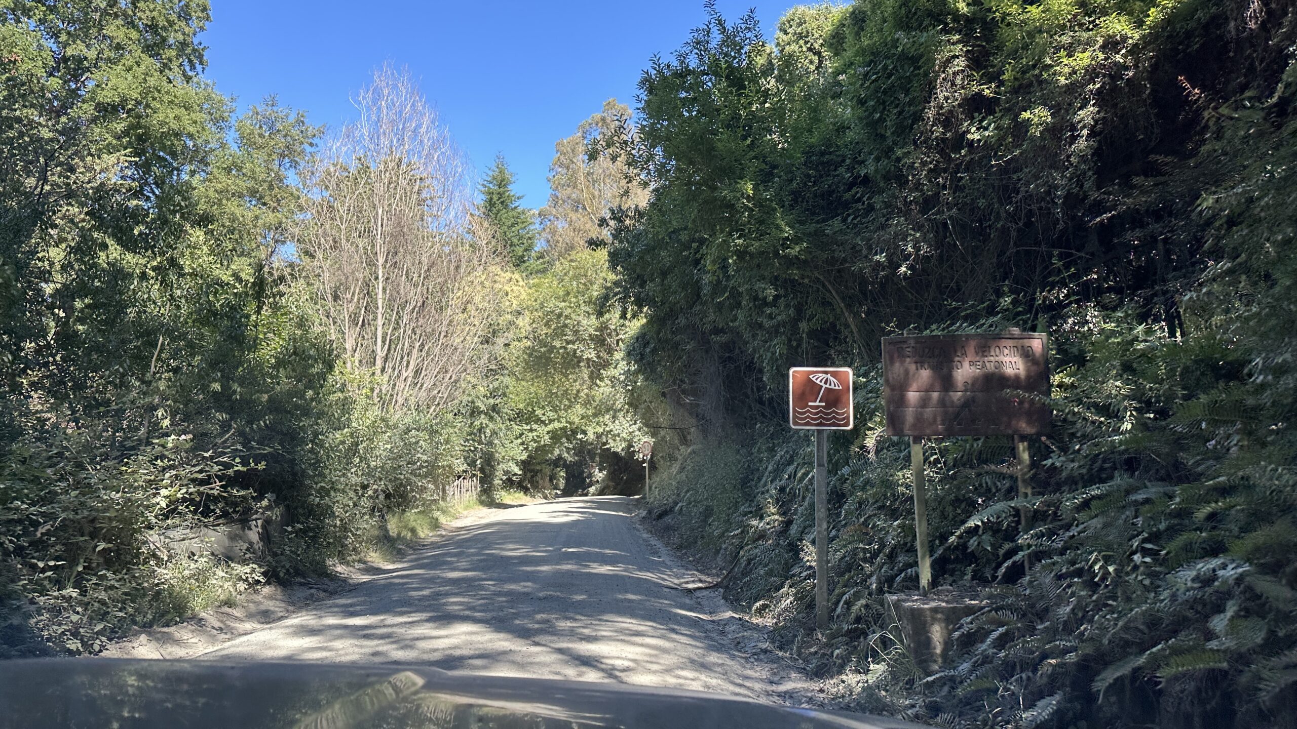 Die Straße ist ziemlich schmal und hier ist auf einmal sehr viel Verkehr. Wir sehen dann auch warum. Es gibt einen Strand und Picknickplatz. Es ist Freitag, es sind Ferien und die Sonne strahlt vom Himmel. Da zieht es viele raus.