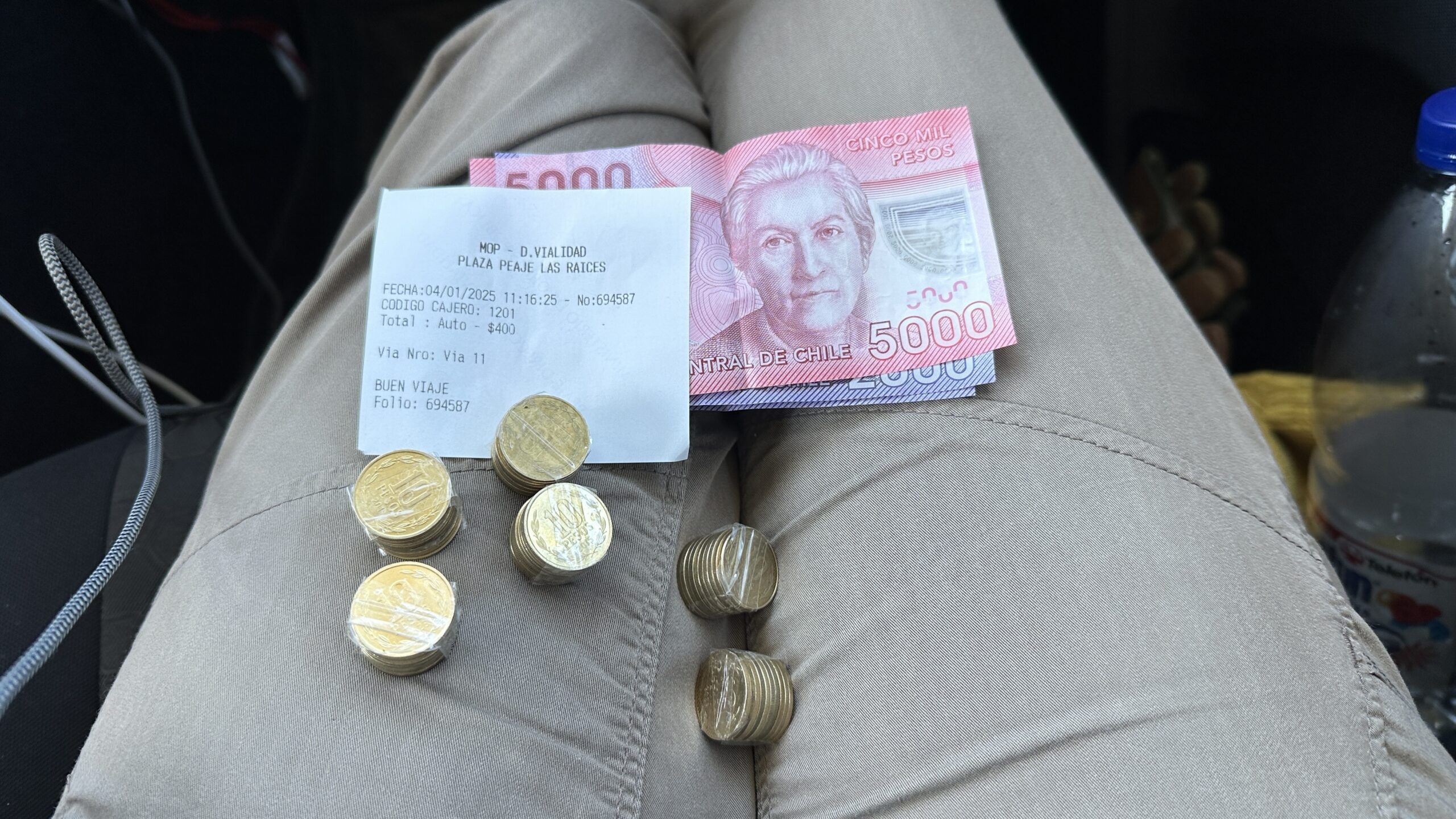 Nach der Ausfahrt des Tunnels müssen wir die Maut begleichen. $ 400 bezahle ich mit einem $ 10.000 Schein. Kleiner habe ich es nicht. Das Wechselgeld bringt uns zum Lachen. Die Münzen für $ 600 sind abgepackt. Warum auch nicht, wenn man immer das selbe brauch.